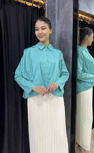 Ceremony Önden Yarım Patlı Önü Kısa Arkası Uzun Kısa Paper Touch Gömlek Elma