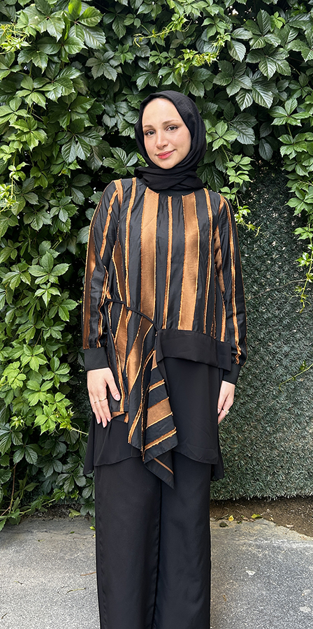 Qupra Önü Asimetrik Taşlı Pantolonlu Takım BEJ