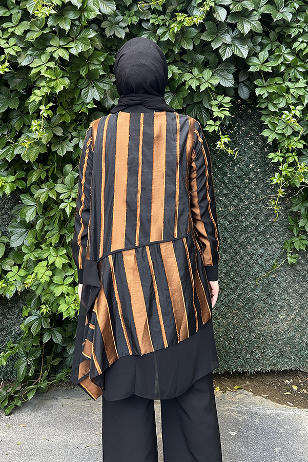 Hukka Omuzları Biye Detaytlı Fermuarlı Kap SİYAH