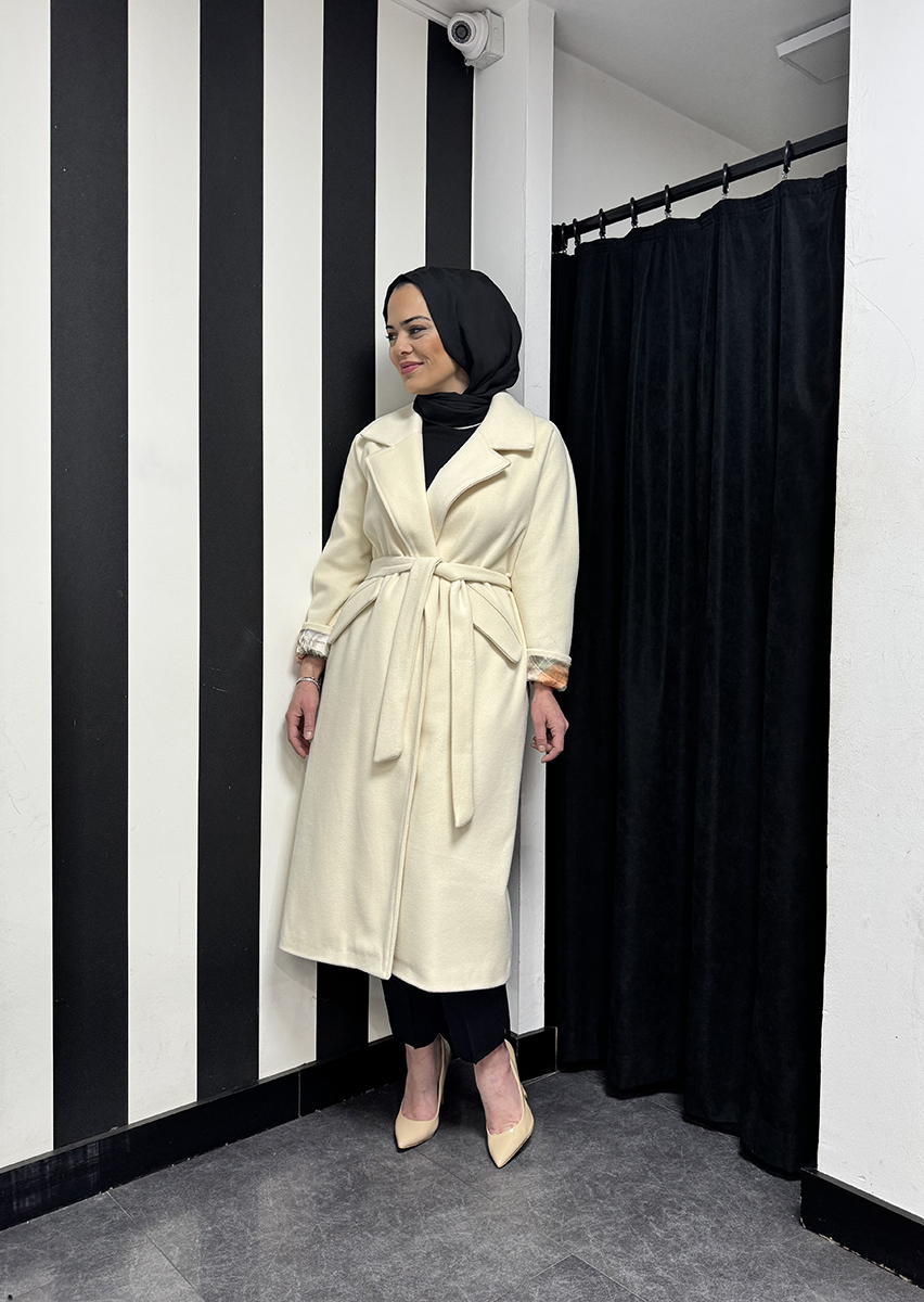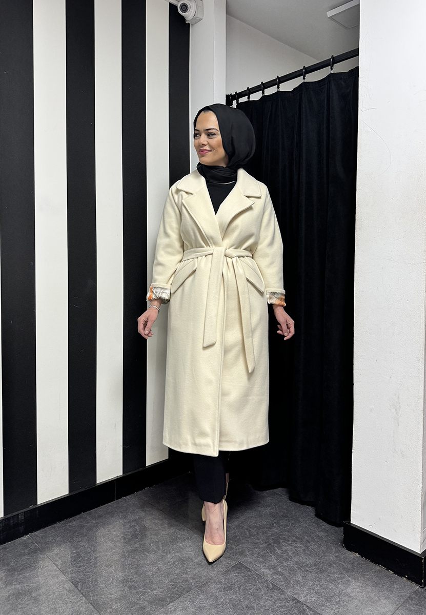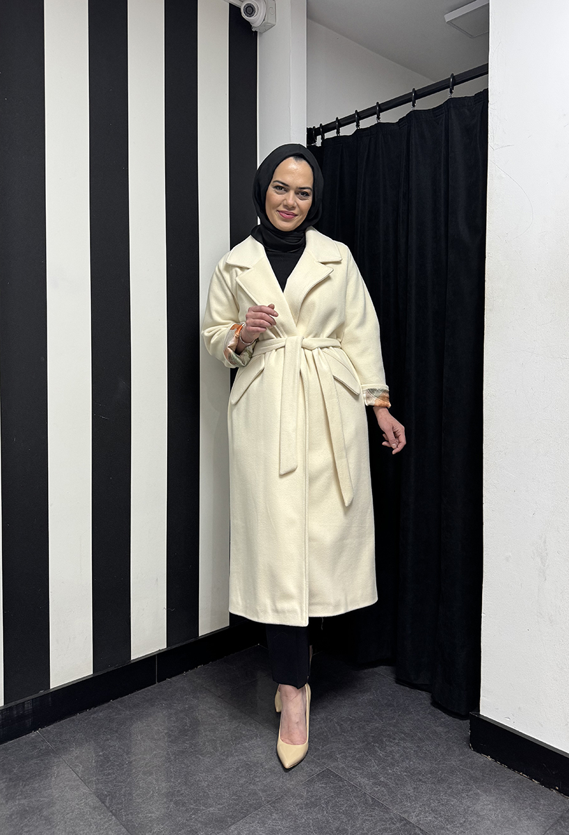 Astarlıdır. Kapalı ceplidir. Seyyar kemerlidir. Kumaş Cinsi: Kaşe Kumaş içerik: %75 Pes %25 Vıs Ürün boy: 118cm 1 beden 36-40 2 beden 40-44 beden uyumludur