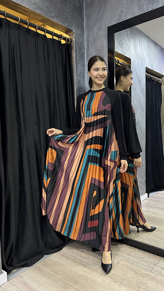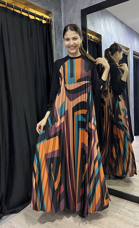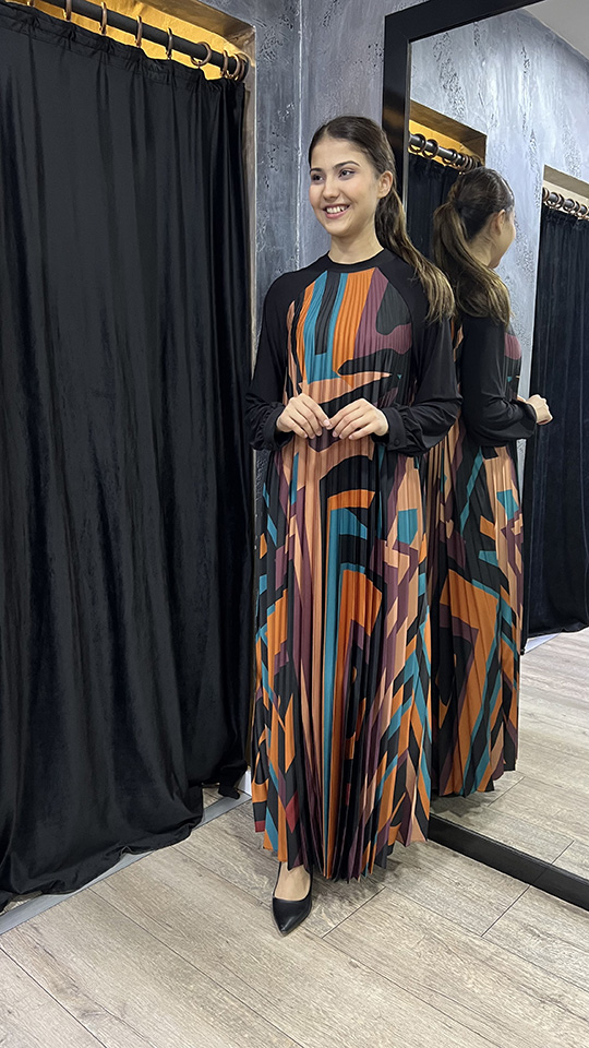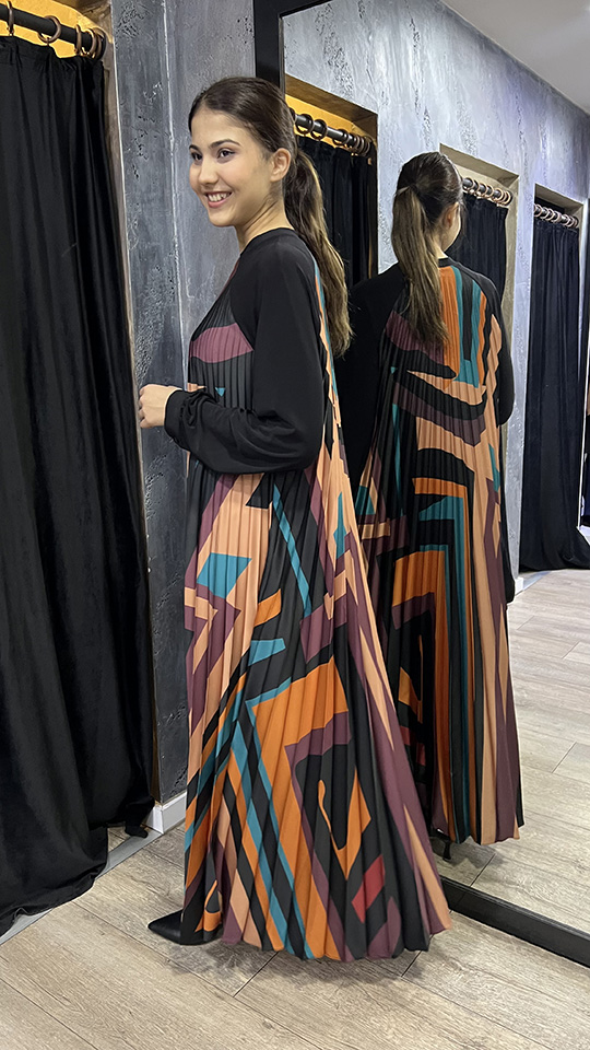 Beys Design Plisole Elbise Desenli