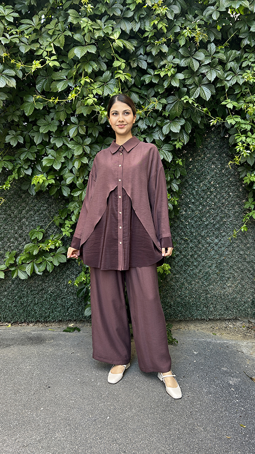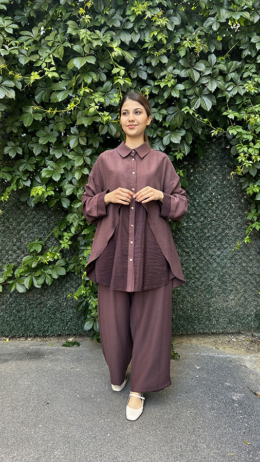 Ceremony Anvelp Detaylı Dubai Kombinli Pasıon Pantolon Takım Kızıl Kahve