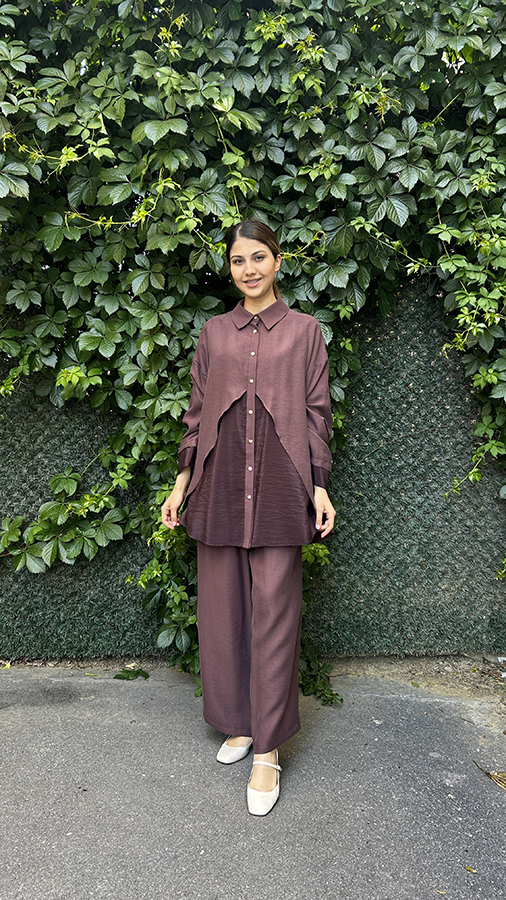 StudioNish Yakası Fermuarlı Pantolonlu Takım Acı Kahve