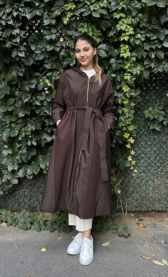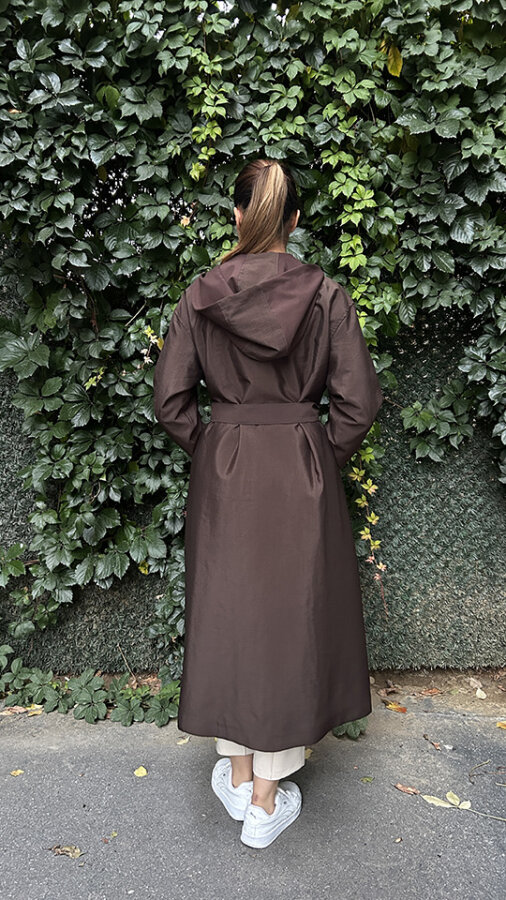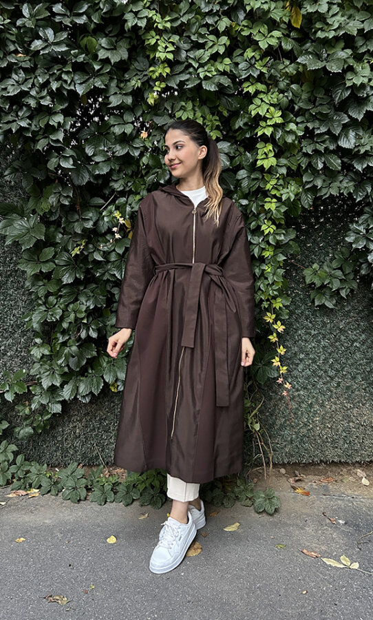 Şükran Önü Çıtçıtlı Kapişonlu Kap KAHVE