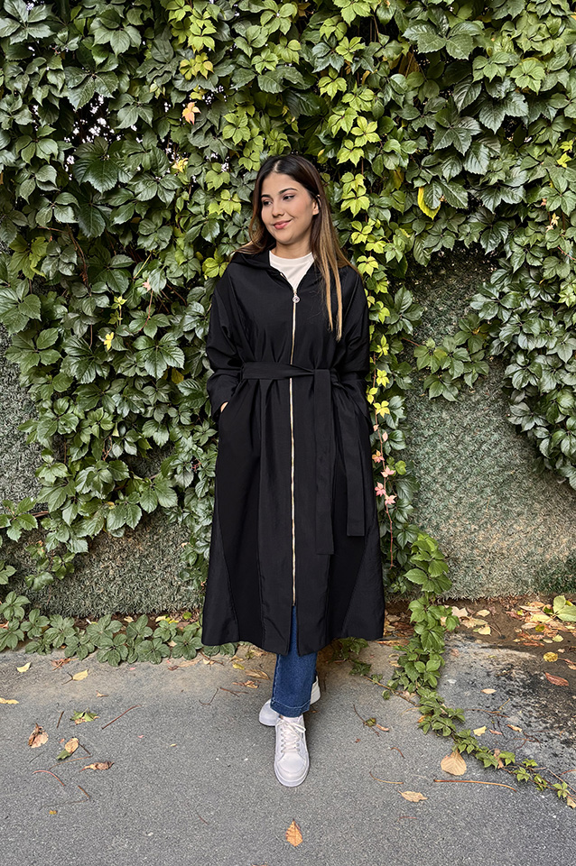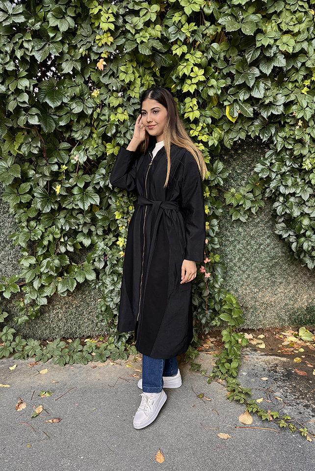 Ceremony Ara Biye Detaylı Önden Fermuarlı Dubai Garnili Kap SİYAH