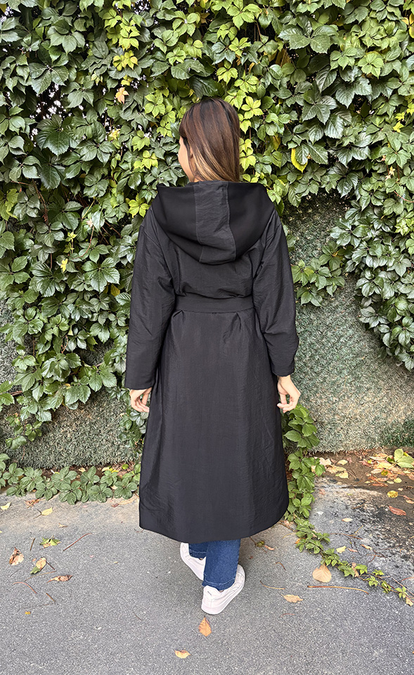 Miss Dalida Triko Detaylı Uzun Denim Kap BLACK