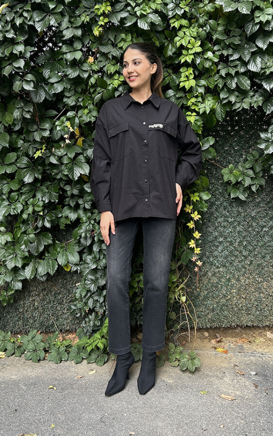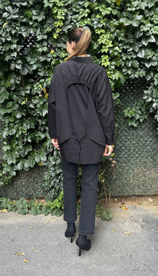 Ceremony Arkası Allerli Bağlamalı Paper Touch Gömlek SİYAH