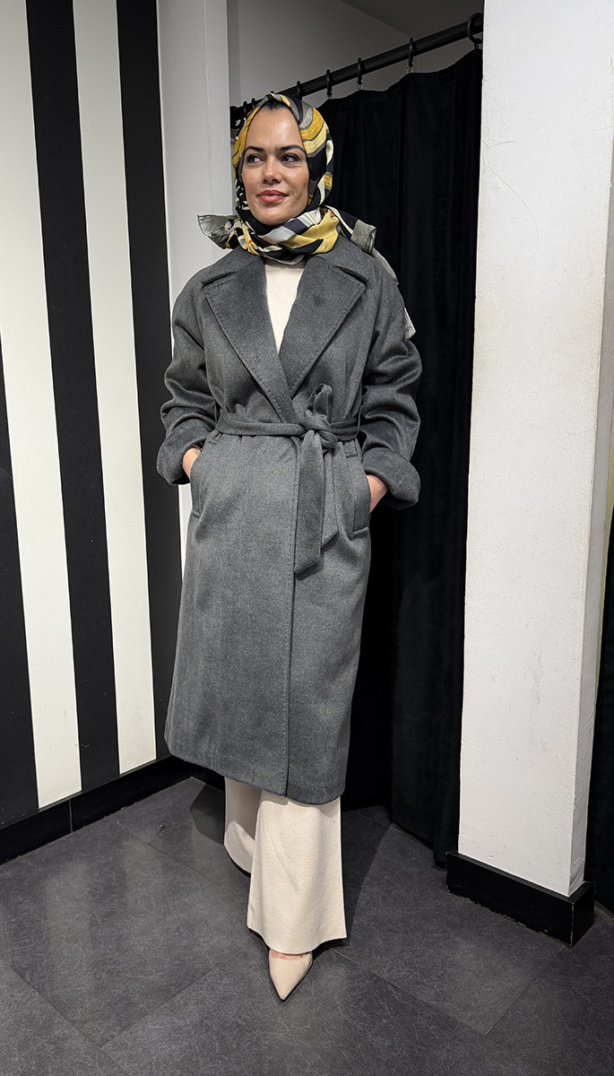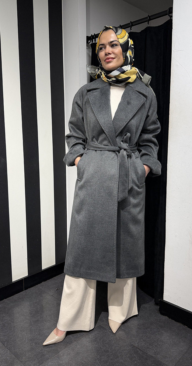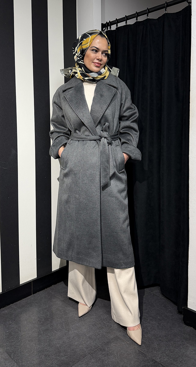 Ceremony Arkası Fermuar Detaylı Kaşe Kaban ANTRASİT