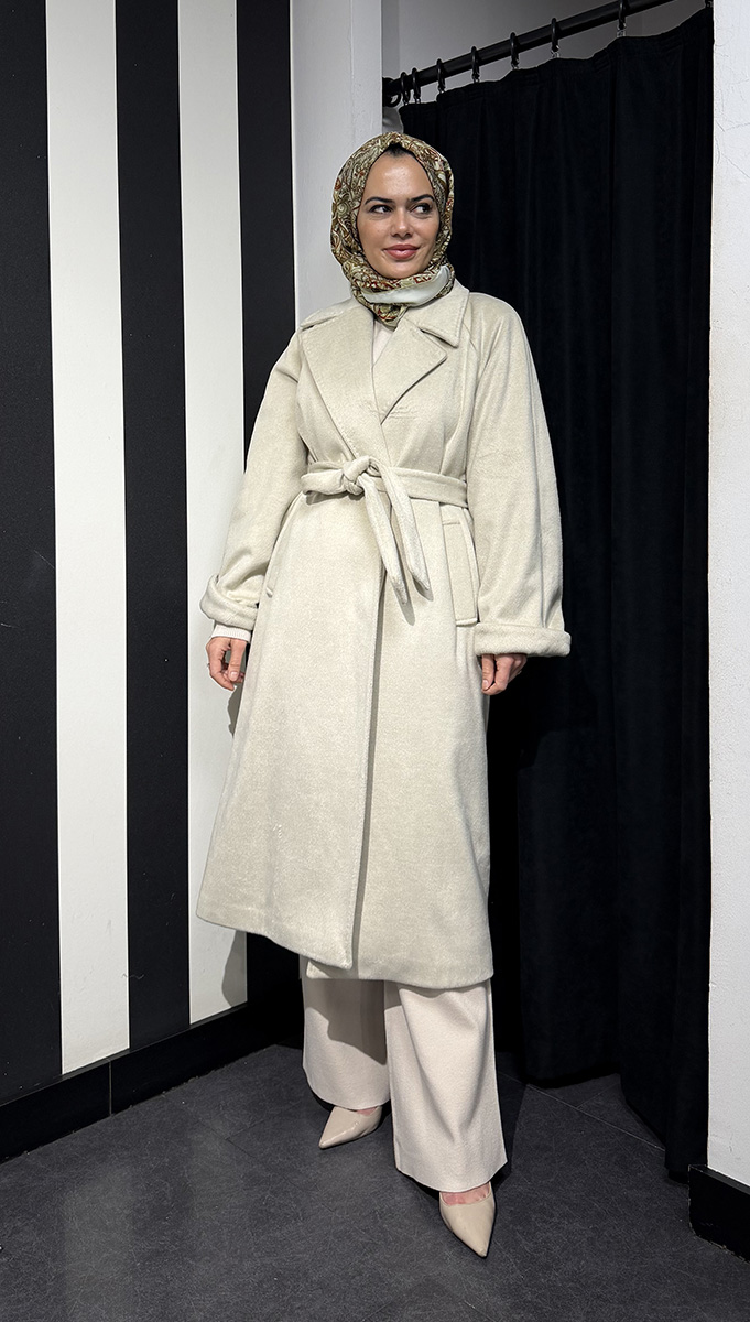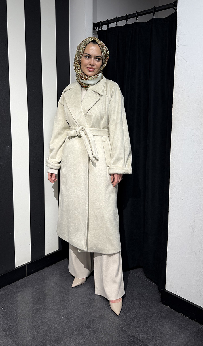 Ceremony Arkası Fermuar Detaylı Kaşe Kaban TAŞ