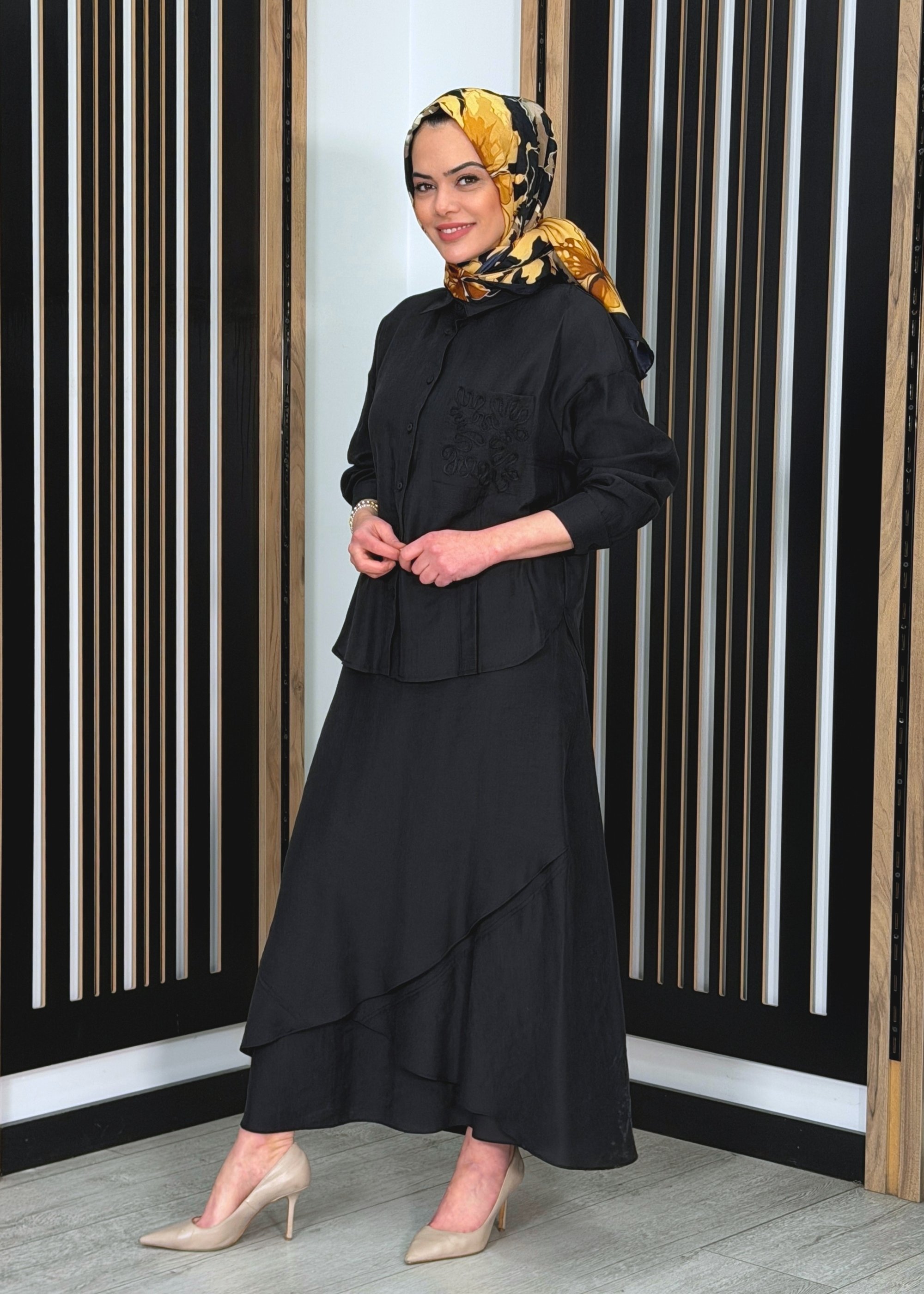 Ceremony Cebi ve Eteği Lase İşlemeli Tencel Etekli Takım SİYAH