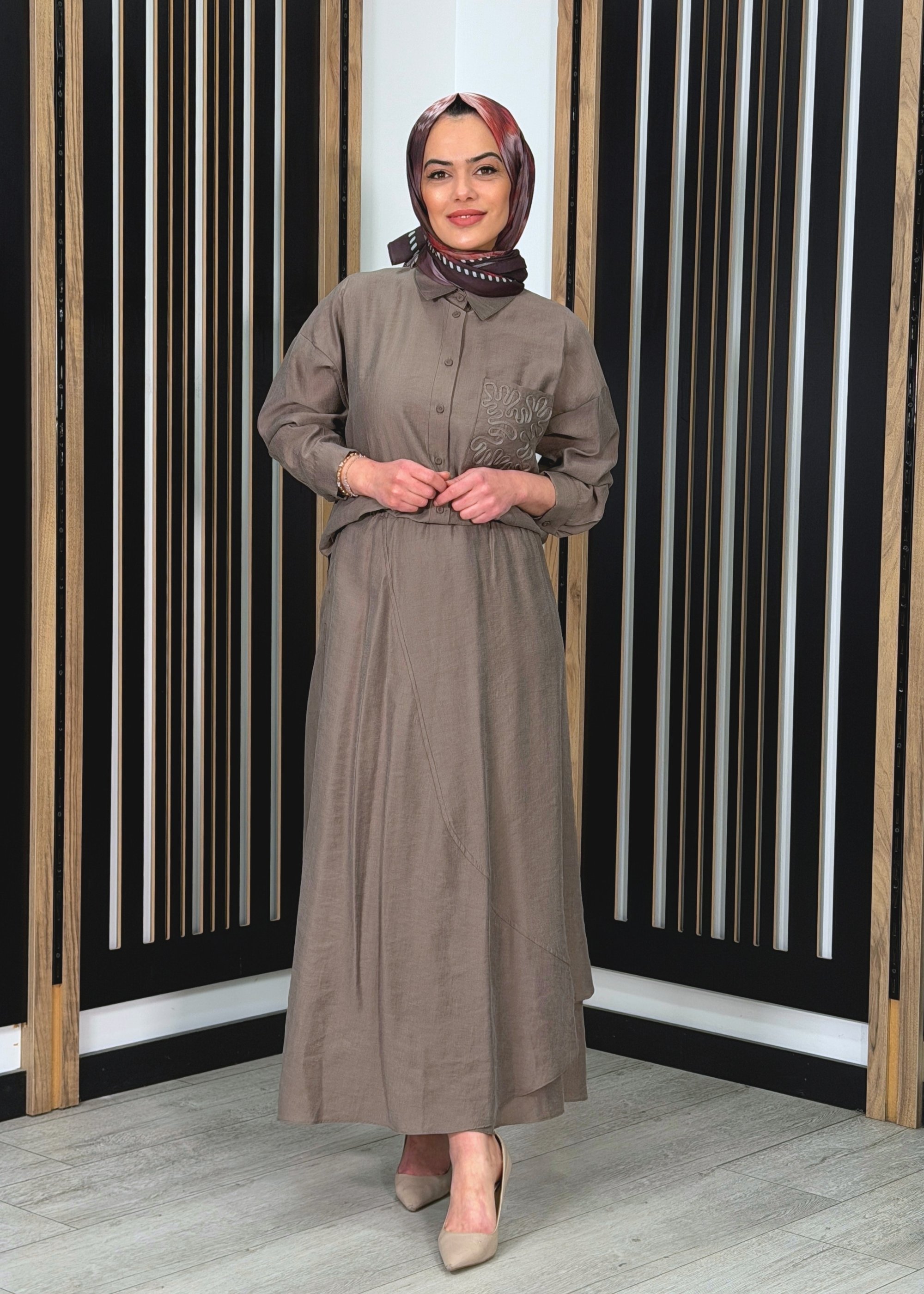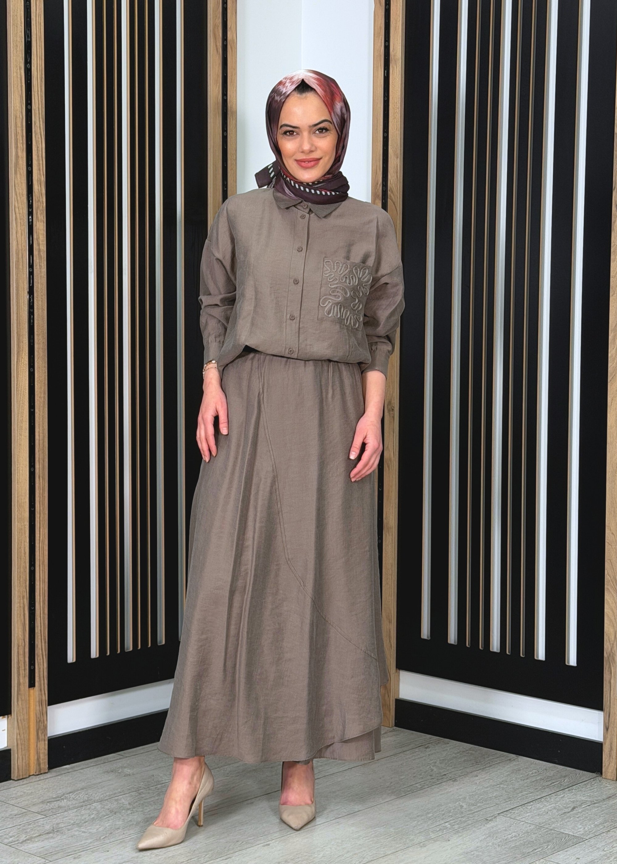 MissWhence Asimetrik Dikişli Etekli Takım KAHVERENGİ