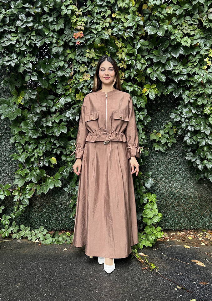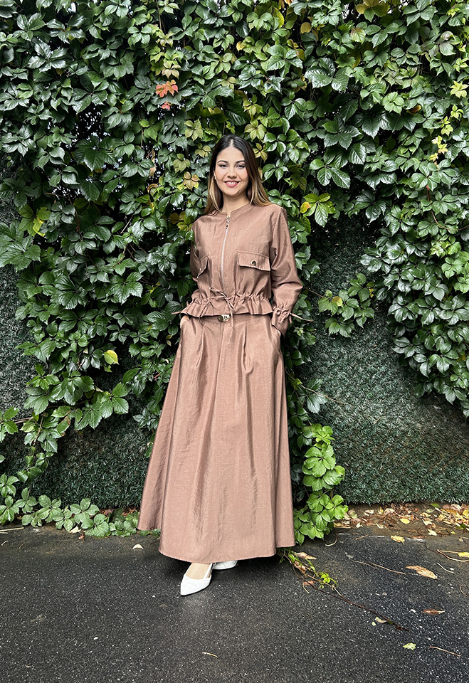 Ceremony Eteği Toka Detaylı Kısa Ceketli Takım CAMEL