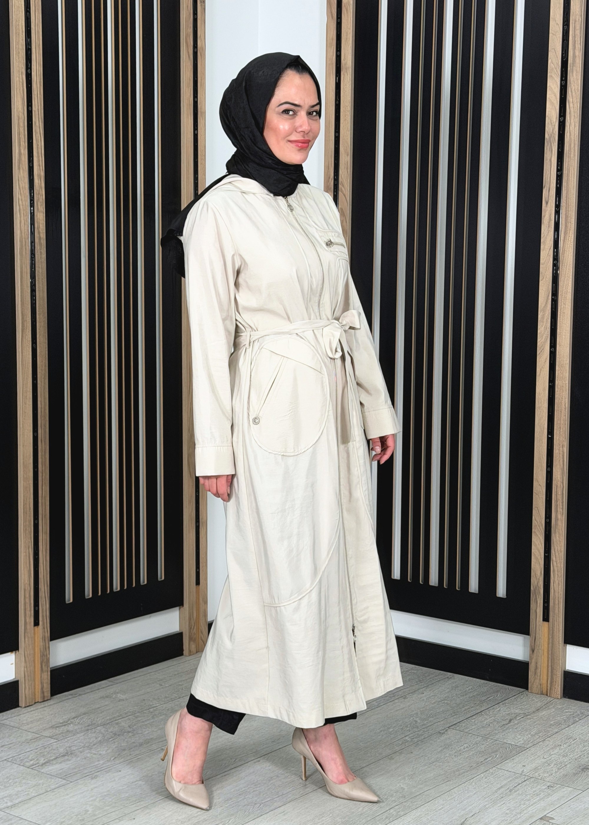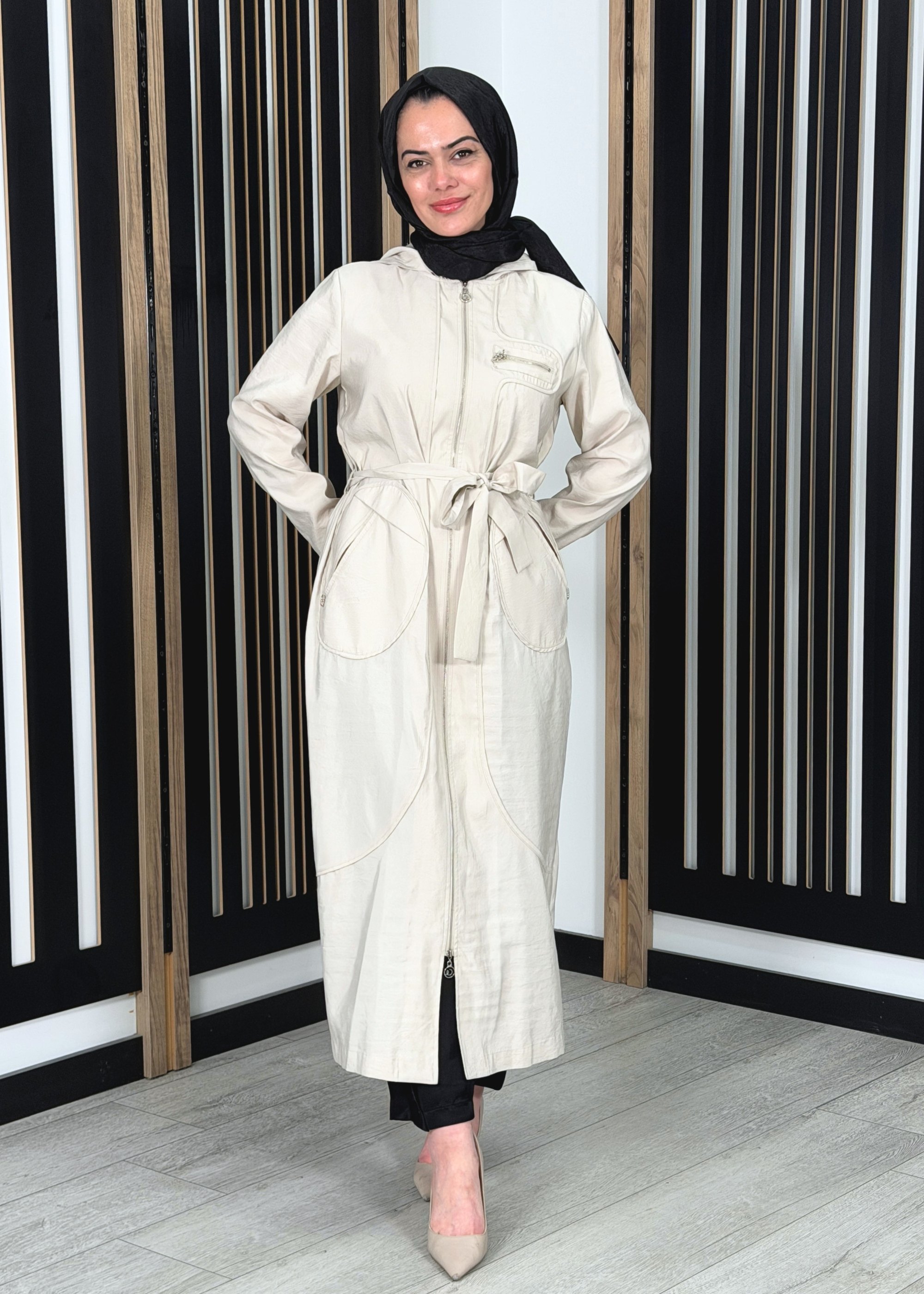 Ceremony Kapüşonlu Yuvarlak Torba Cepli Fermuarlı Safari Kap TAŞ