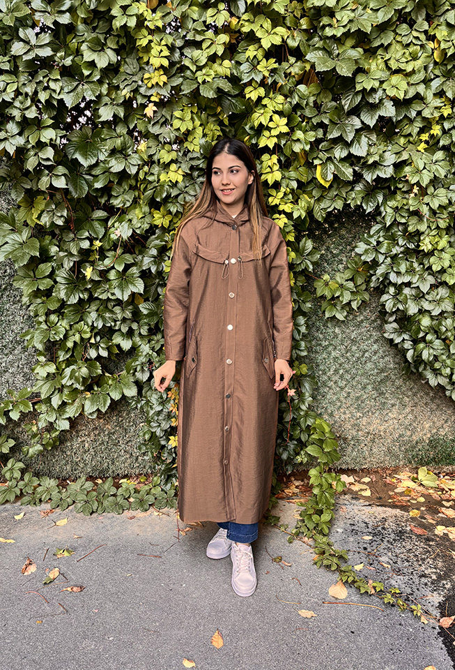 Ceremony Kapüşonlu Zig Zag Dikişli Trençkot Fındık