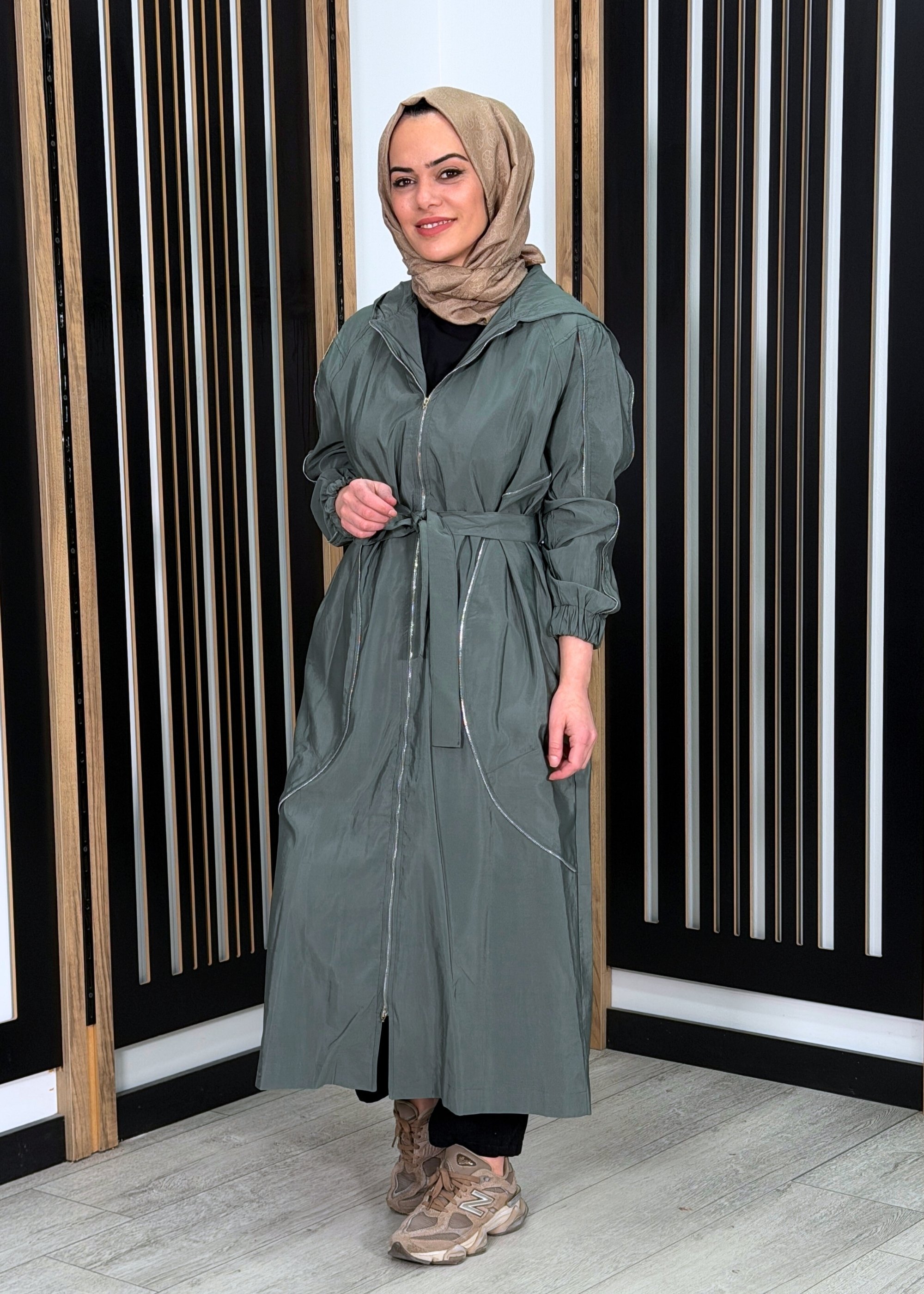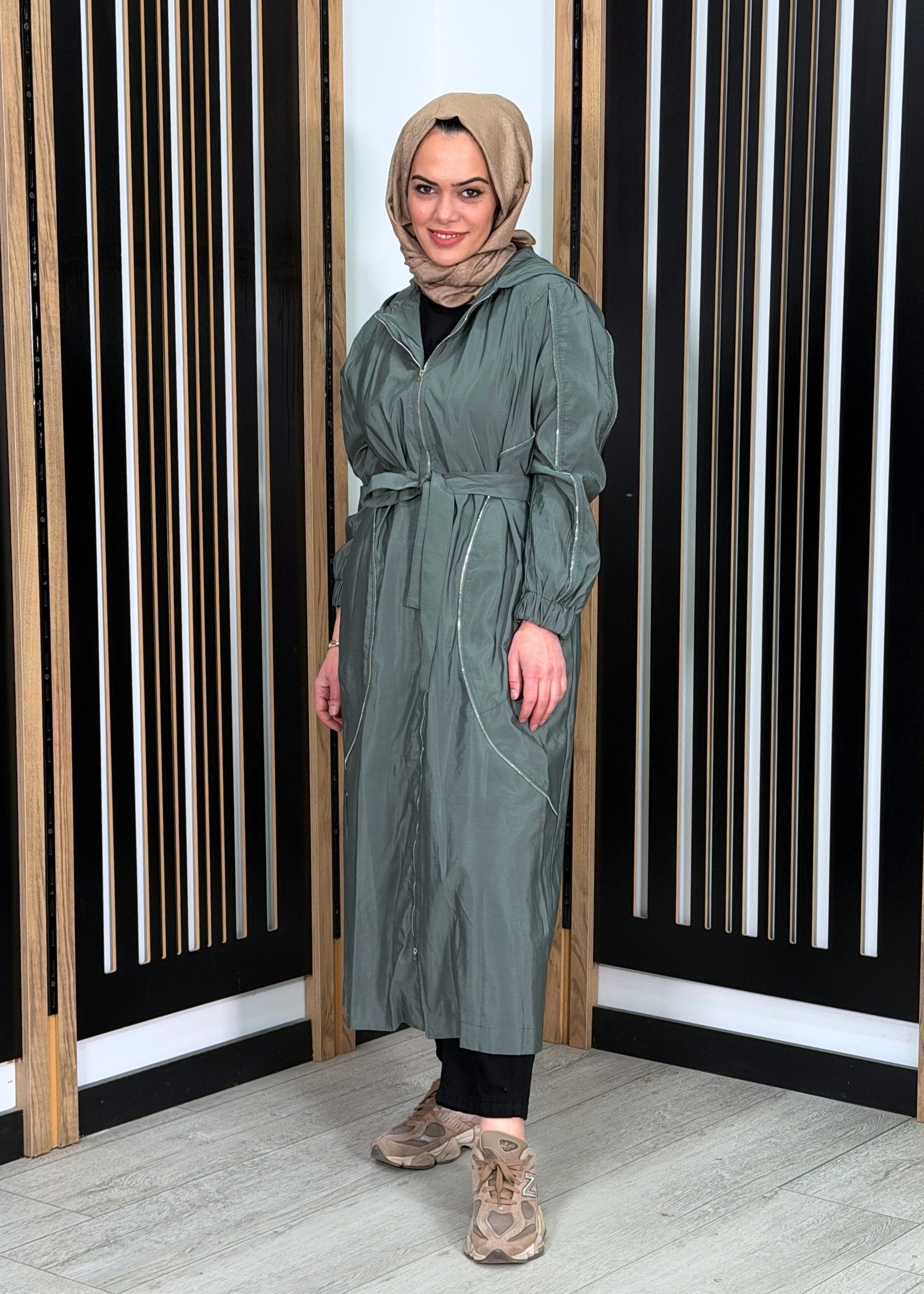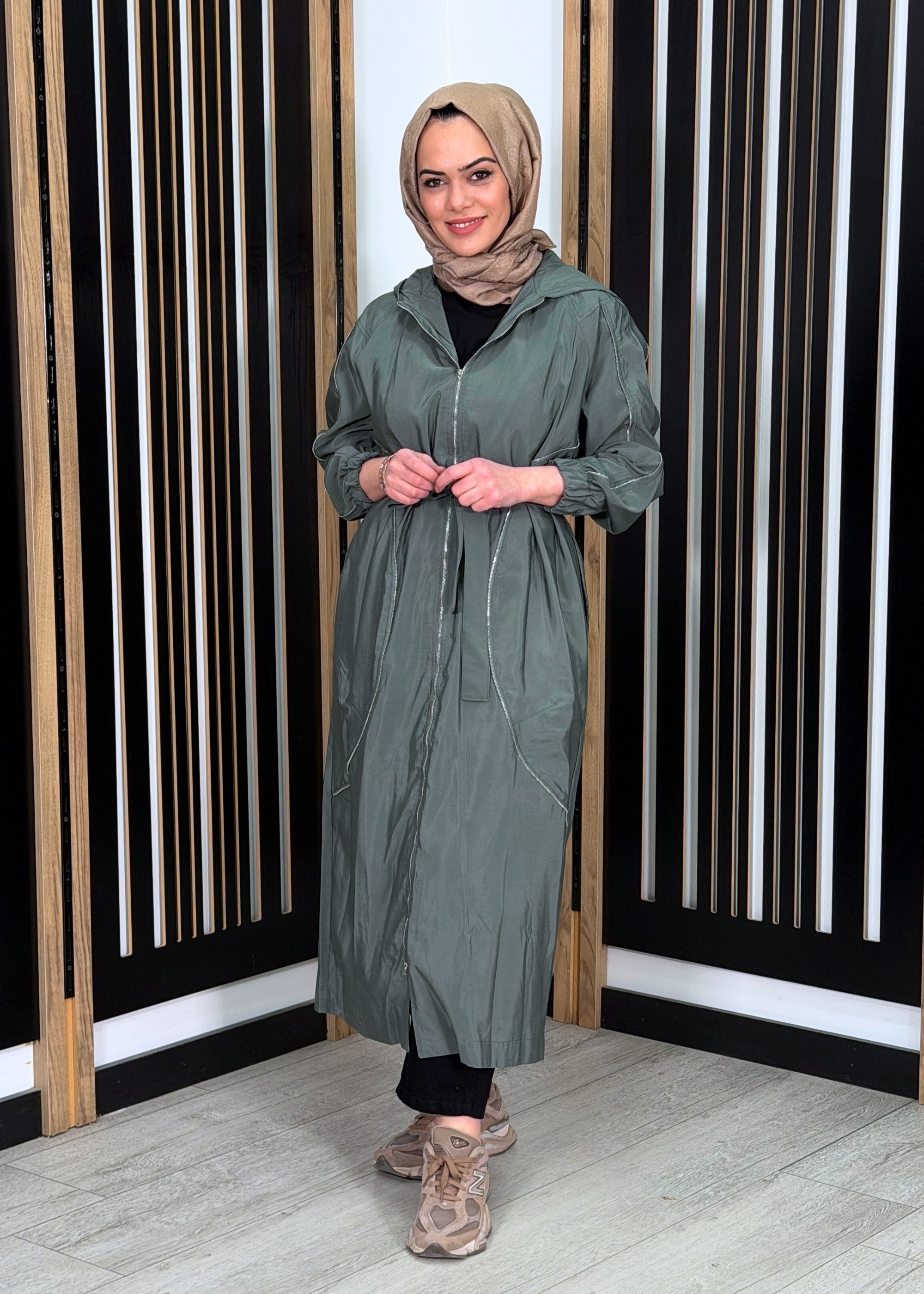 Ceremony Kolları ve Ön Bedenleri Fermuar Detaylı Safari Kap YEŞİL