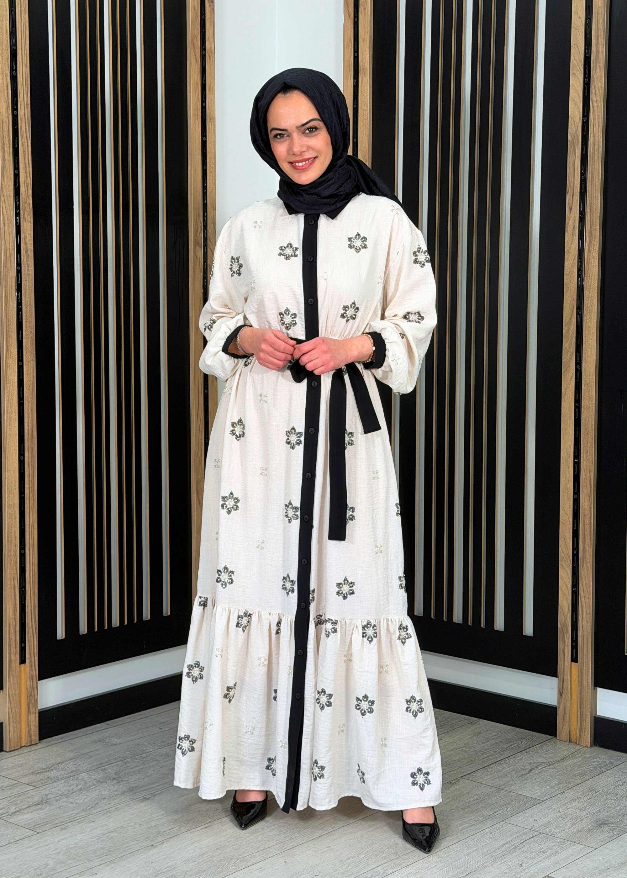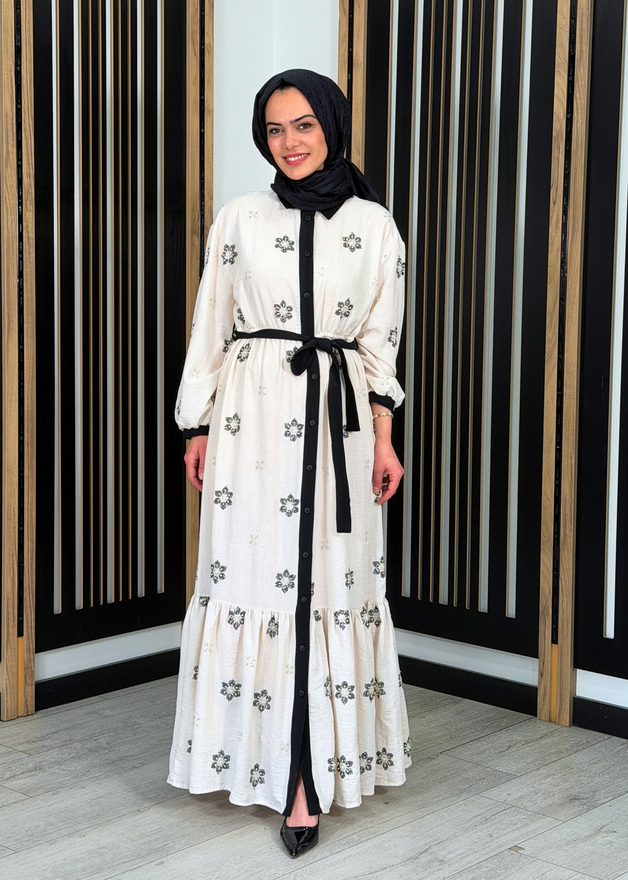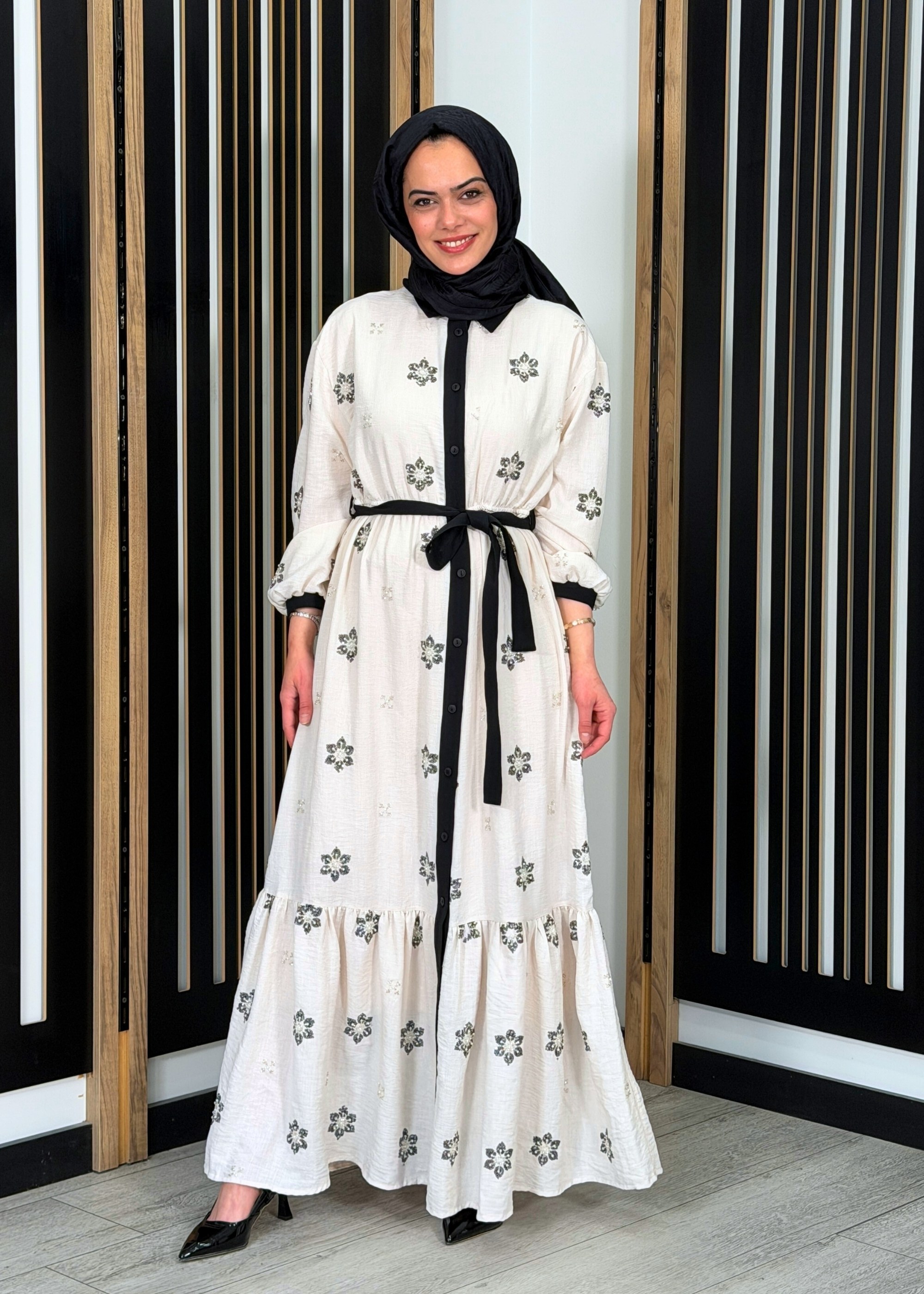 MissWhence Dantel Detaylı Çiçek Desenli Elbise SİYAH