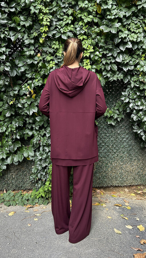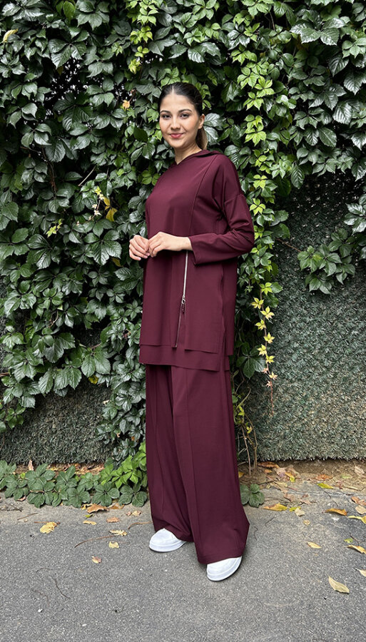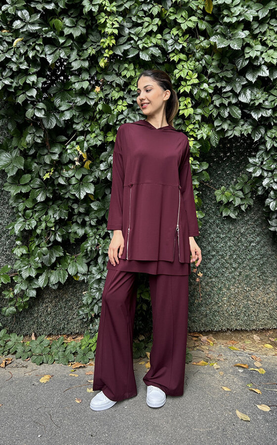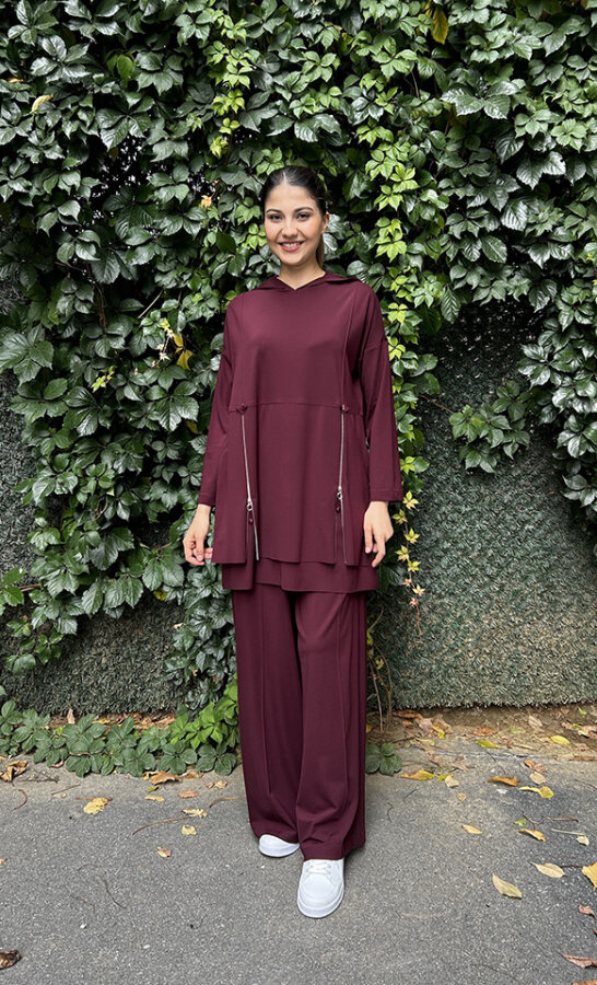 Ceremony Önden Çift Fermuarlı Kapüşonlu Pantolonlu Takım MÜRDÜM