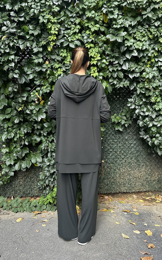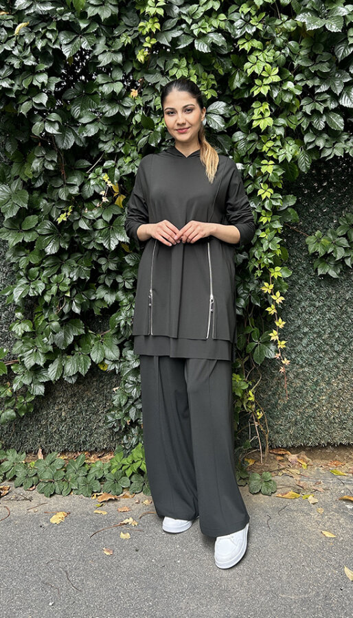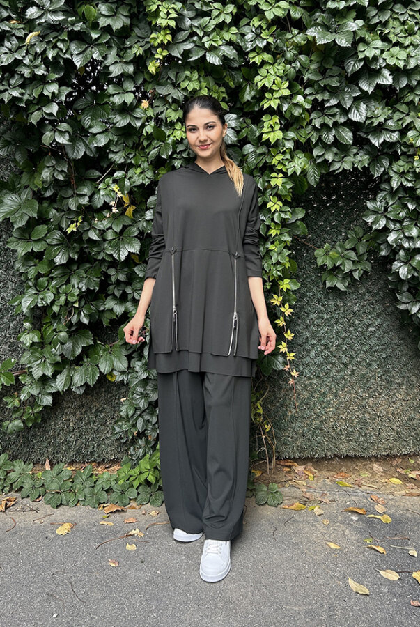 Ceremony Önden Çift Fermuarlı Kapüşonlu Pantolonlu Takım YEŞİL