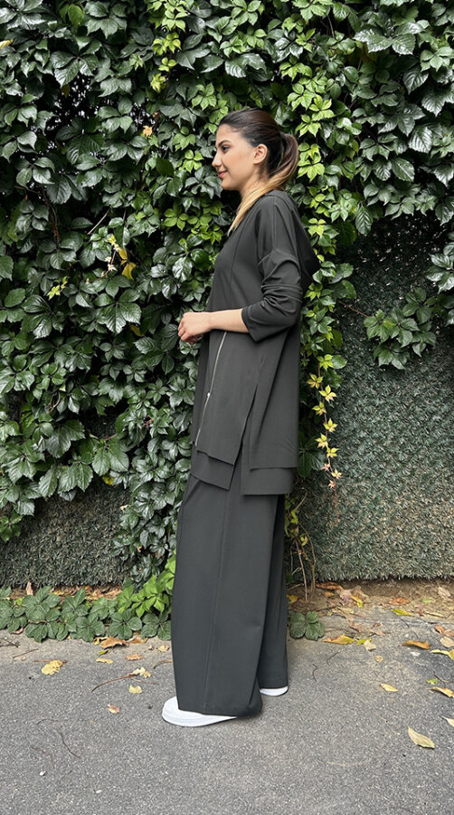 StudioNish Yakası Fermuarlı Pantolonlu Takım Acı Kahve