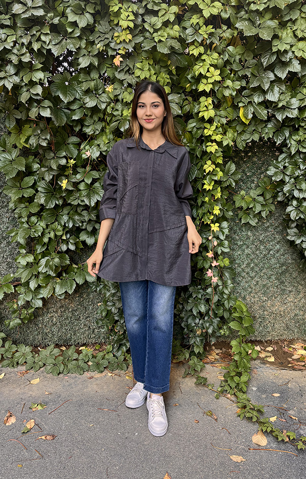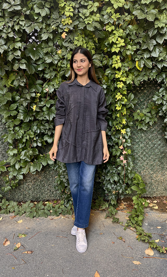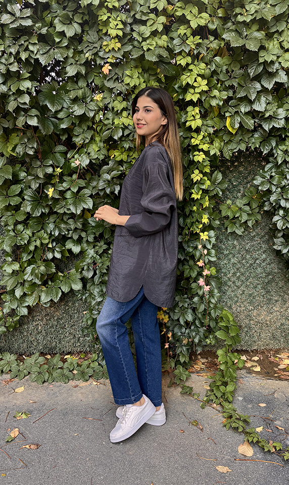 Ceremony Önden Düğmeli Uzun Cep Detaylı Tunik ANTRASİT