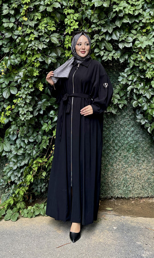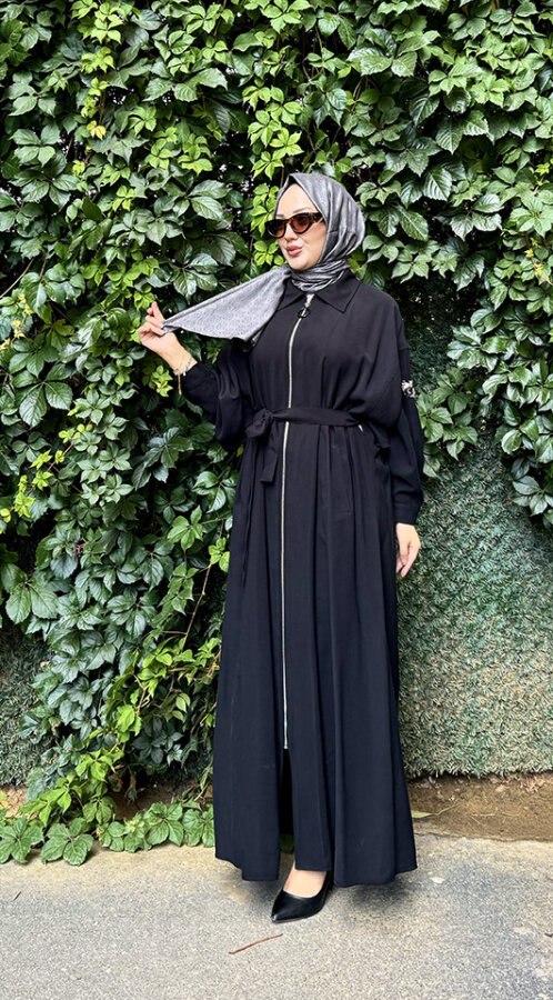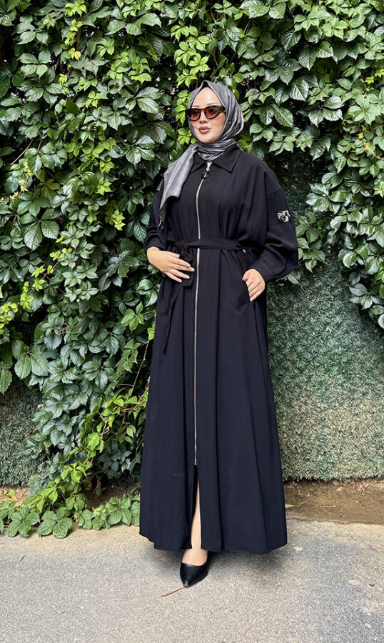 Ceremony Önden Fermuarlı Tek Kolu Taş Detay İçten Kemerli Kap SİYAH