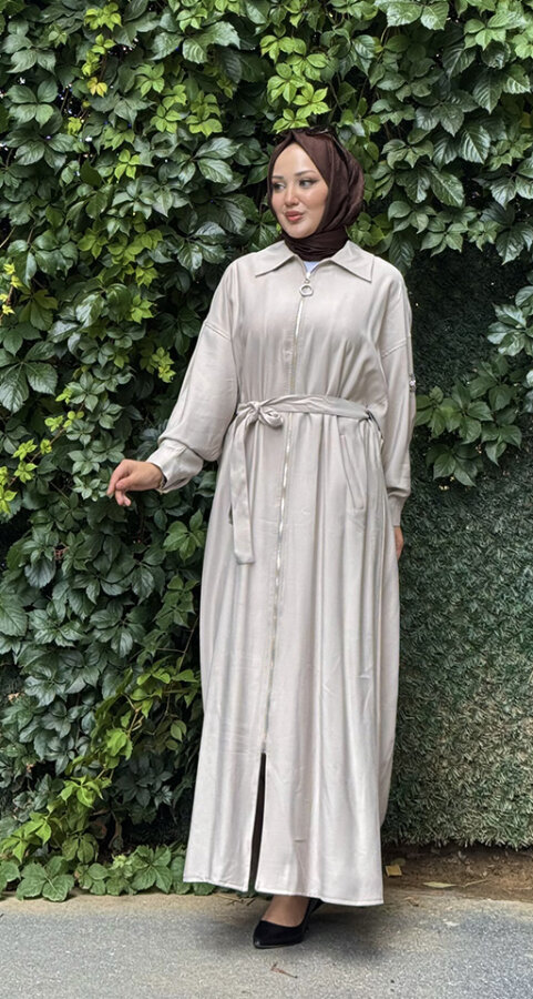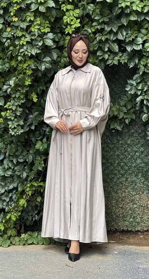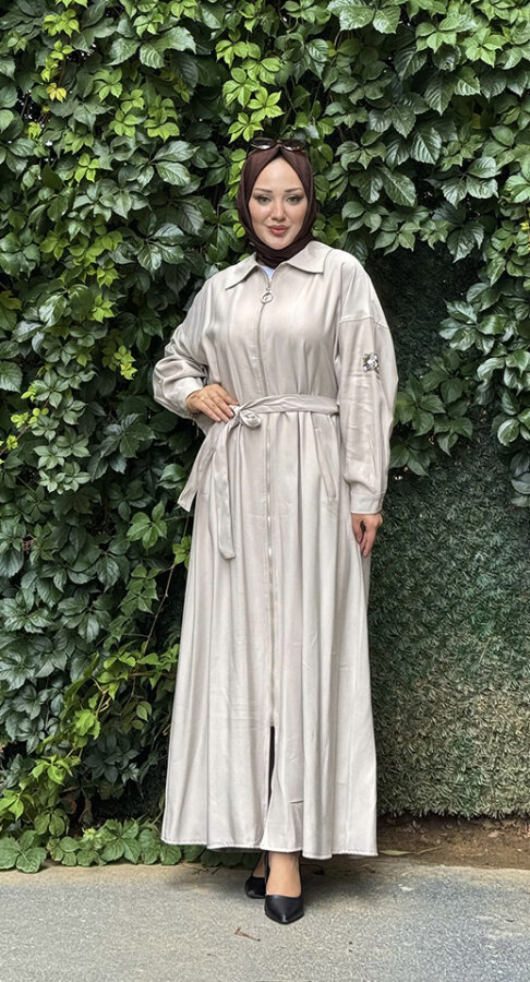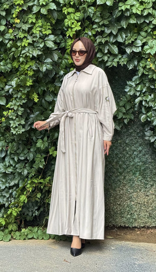 Ceremony Önden Fermuarlı Tek Kolu Taş Detay İçten Kemerli Kap TAŞ