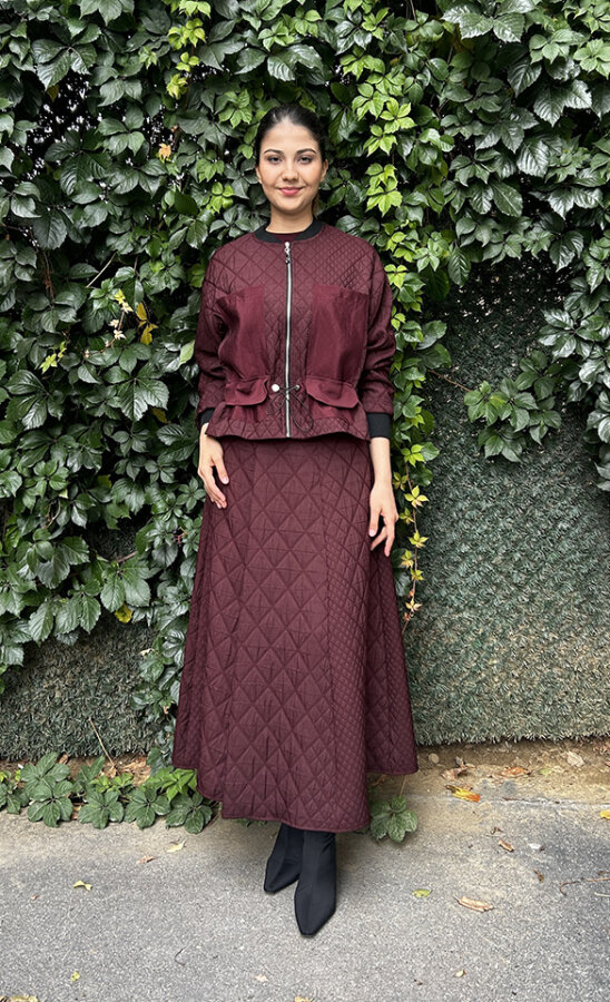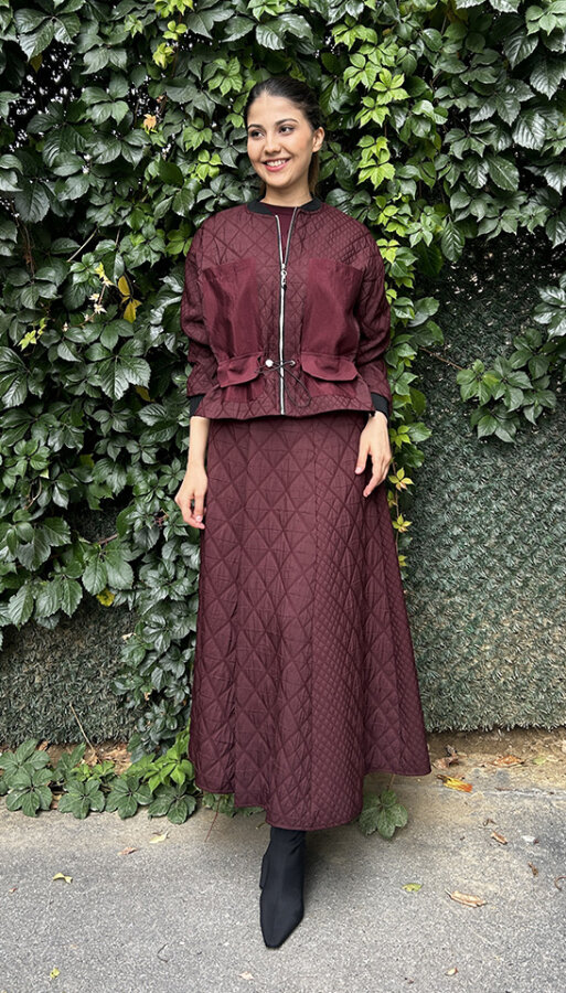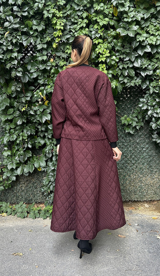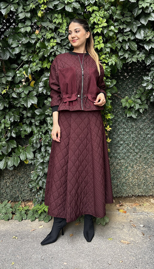 Ceremony Önü Fermuarlı Ceket Ve Etekli Baklava Kapitön Takım BORDO