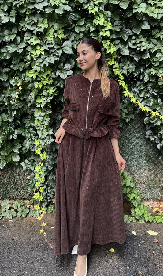 StudioNish Yakası Fermuarlı Pantolonlu Takım Acı Kahve