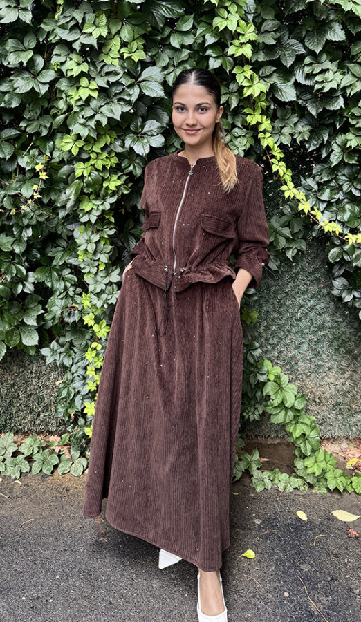 Ceremony Pullu Beli Lastikli Bolerolu Etekli Takım KAHVERENGİ
