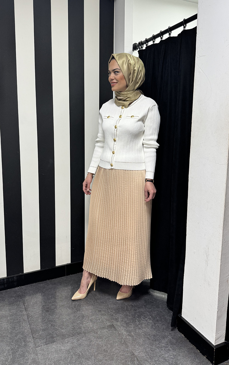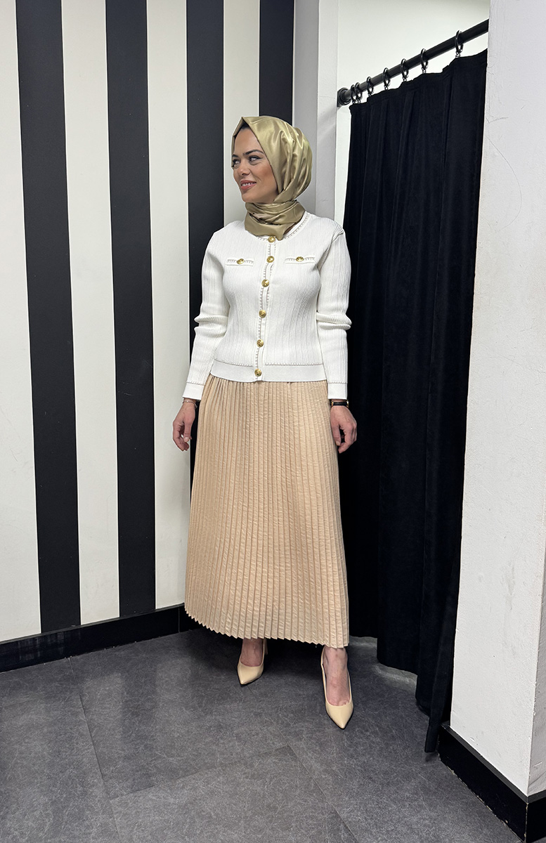 Yeşim Özcan Beli Lastikli Sim Detaylı Etek Naturel