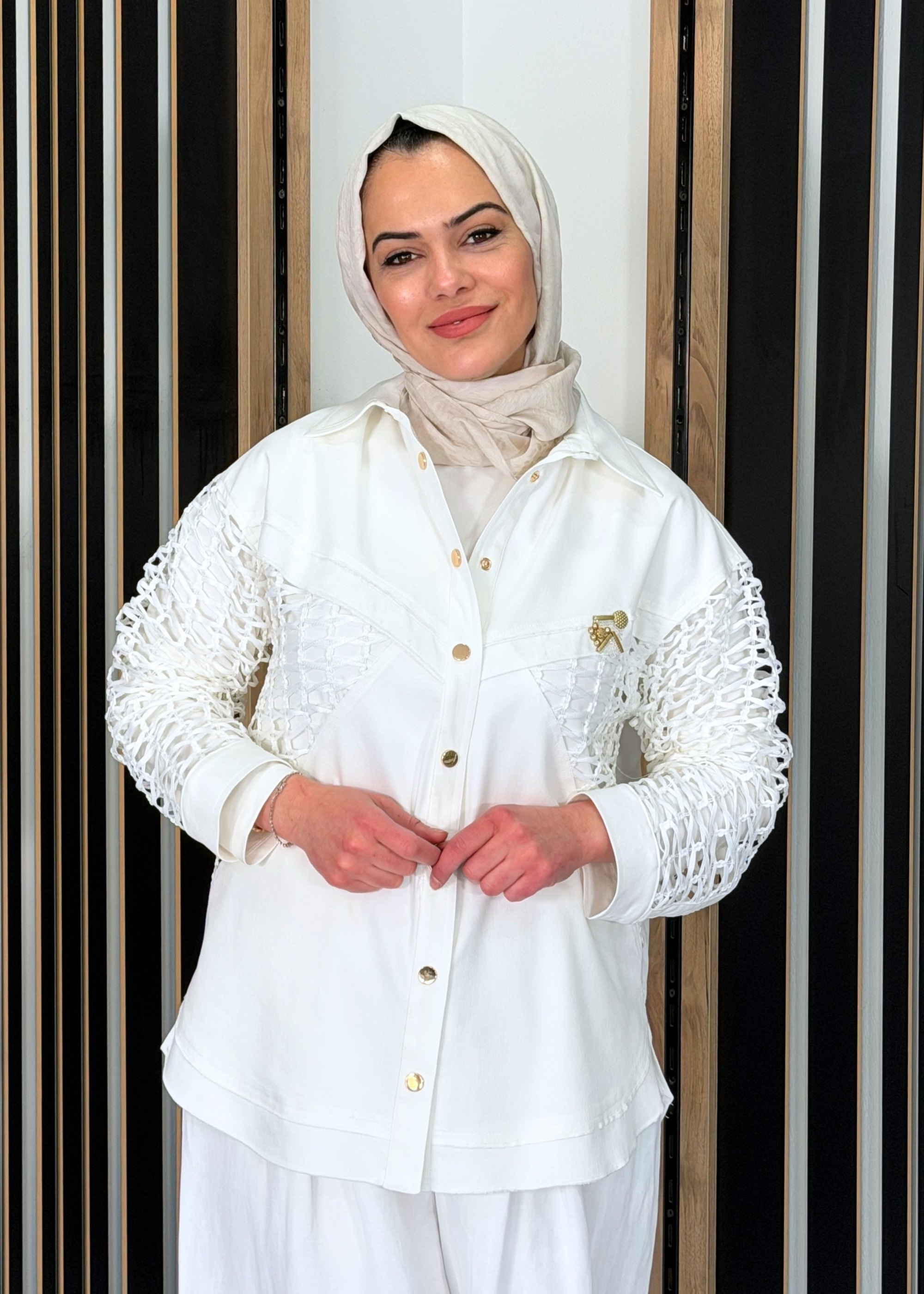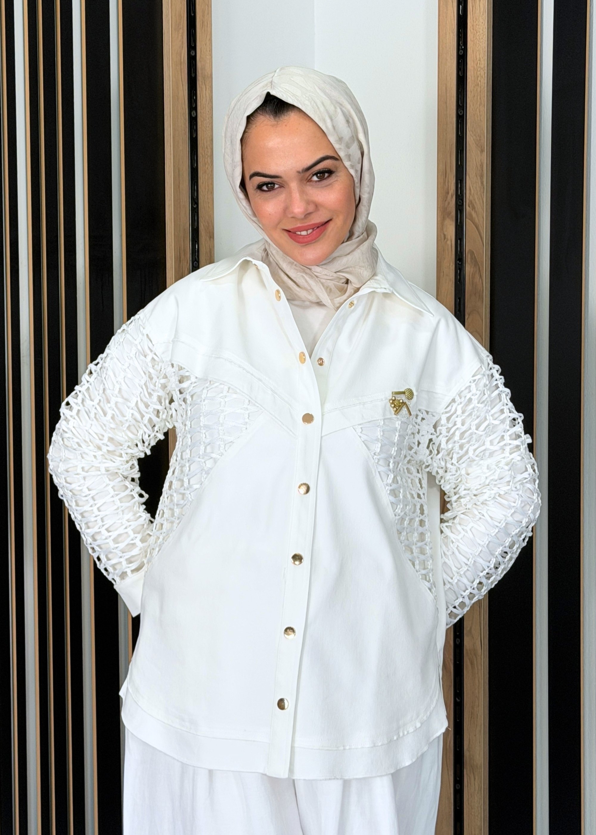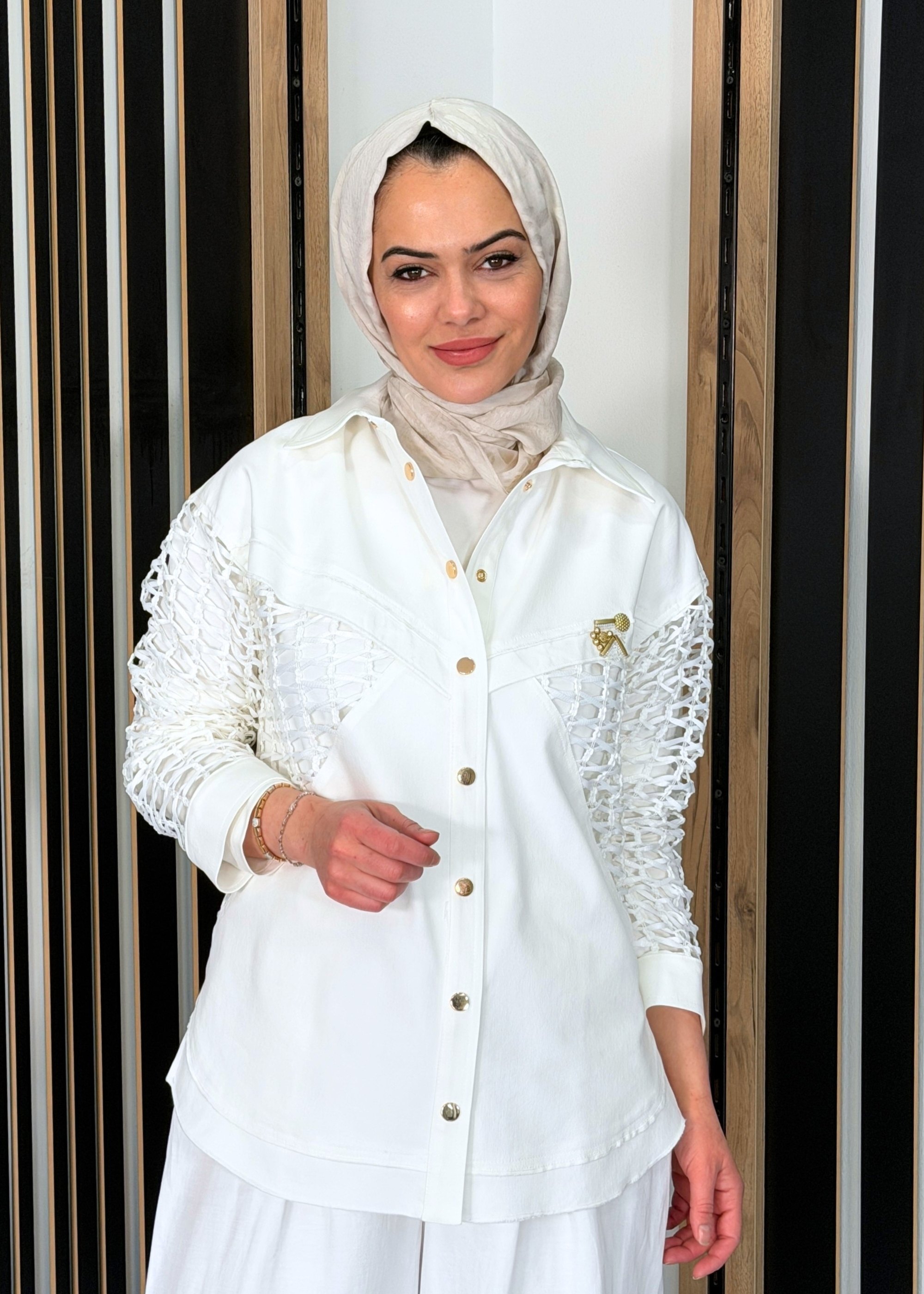 Ceremony Simetrik File Detaylı Neptün Bluz EKRU