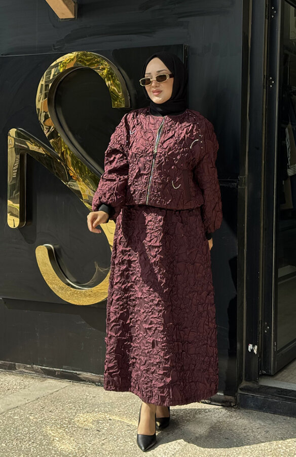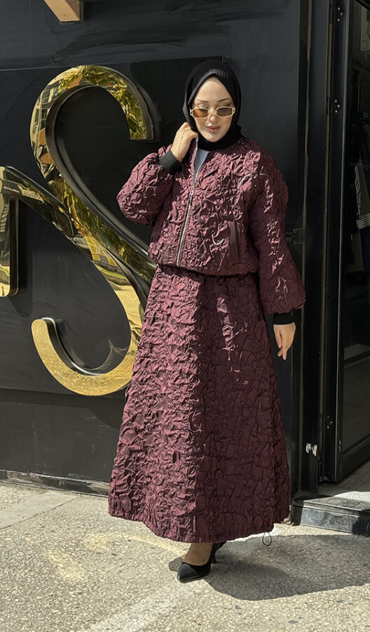 Zeynep Zümra Büzgü Detatlı Pliseli Etek MÜRDÜM