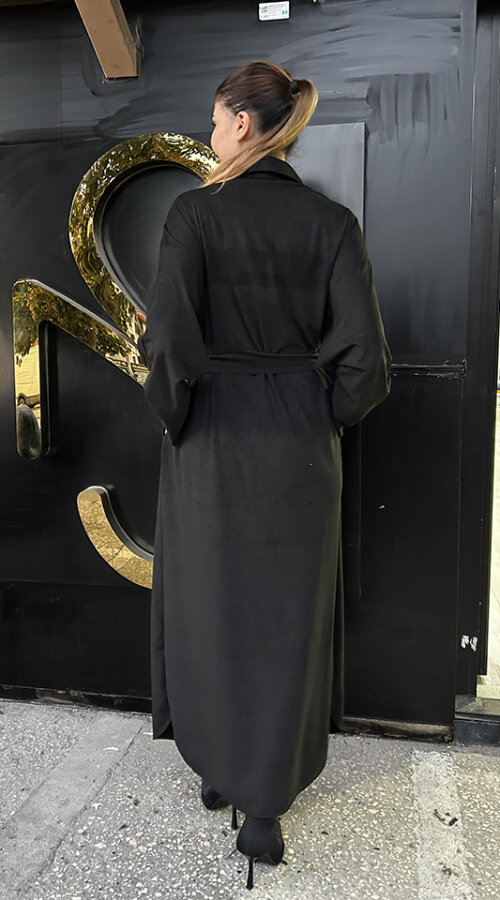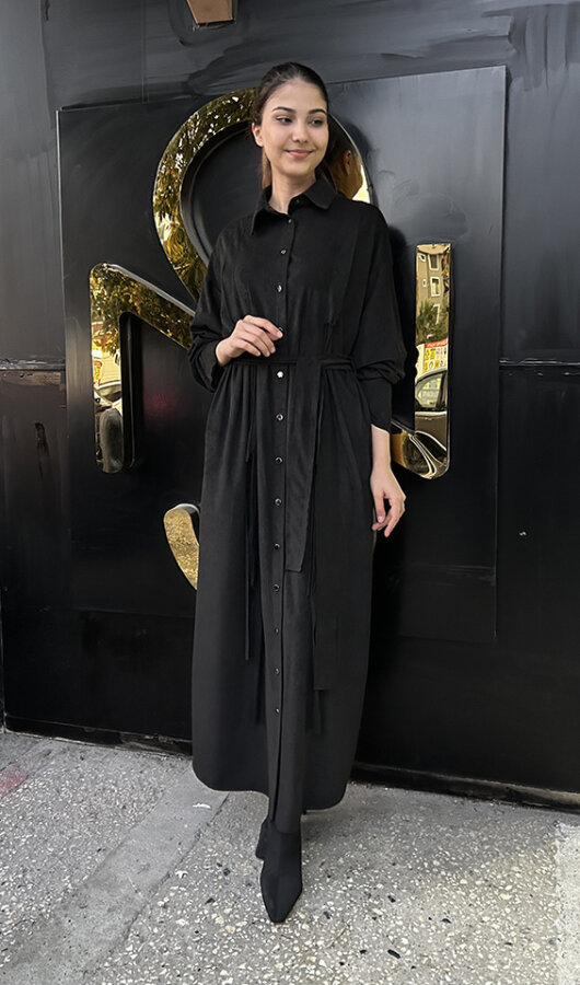 Vuu Önü Nervürlü Yarasa Kol Elbise Acı Kahve