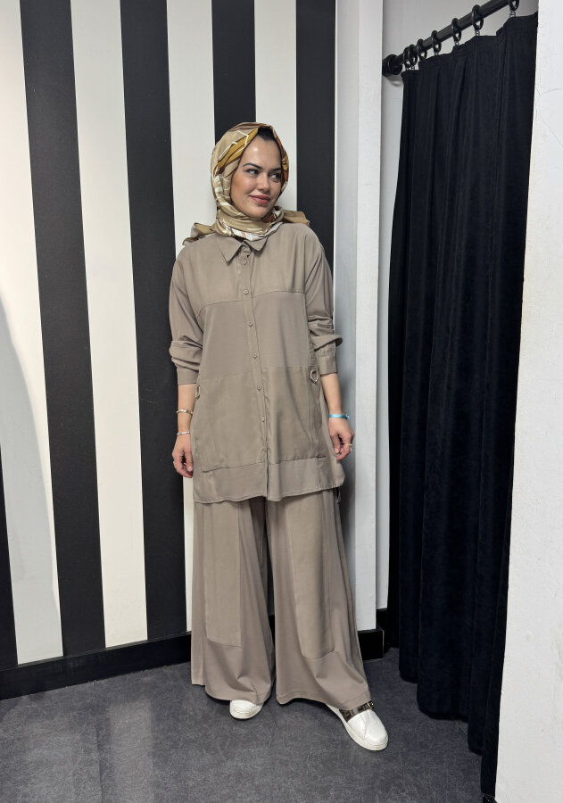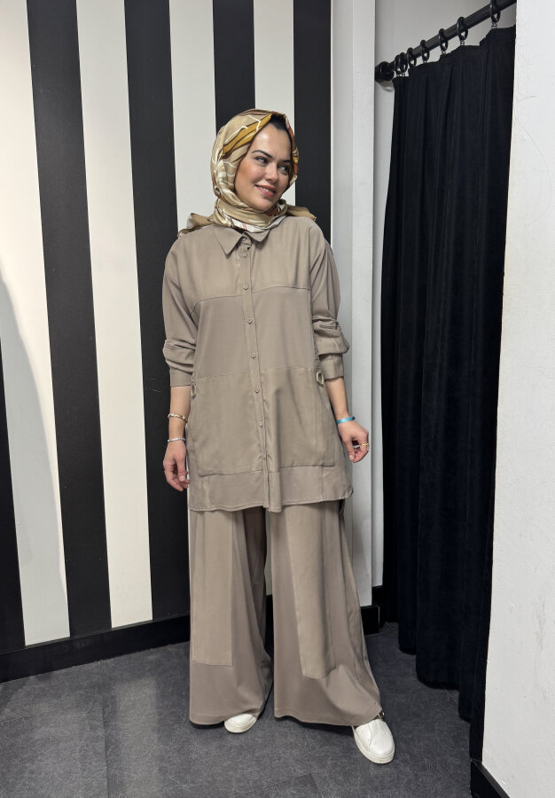 StudioNish Yakası Fermuarlı Pantolonlu Takım TAŞ
