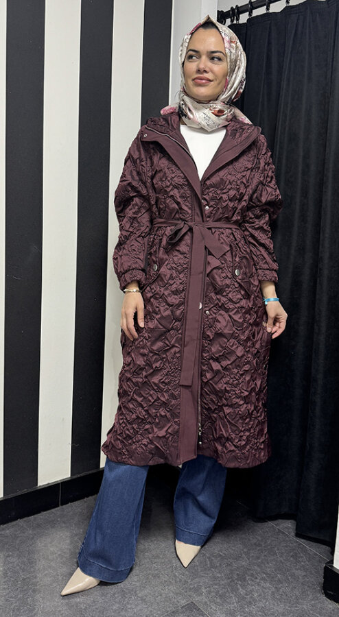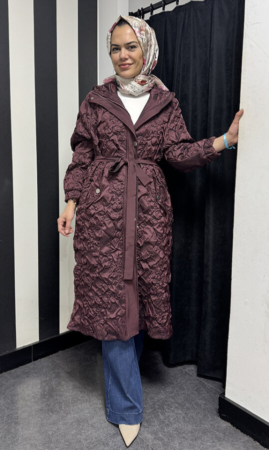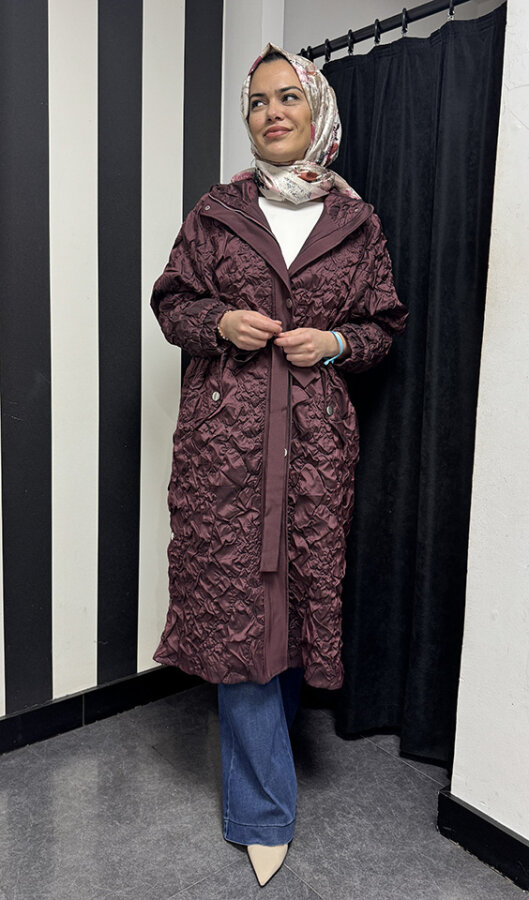 Qupra Yakası Ve Kolları Kürklü Kap BORDO