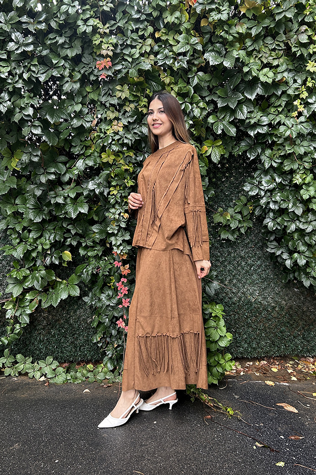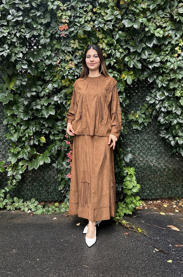 Ceremony Yarasa Kol Etekli Takım KAHVE