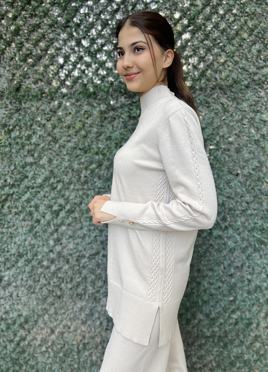 Clande Balıkçıl Yaka Triko Bluz EKRU