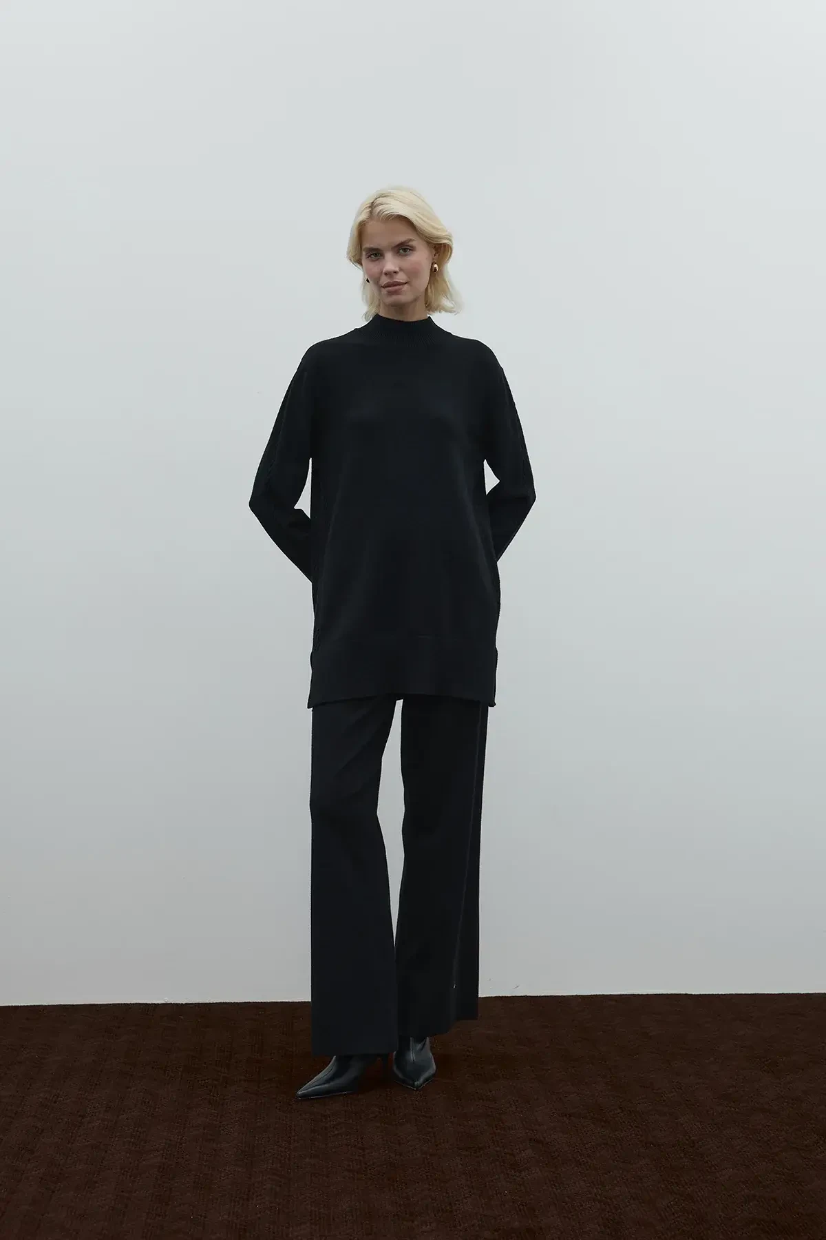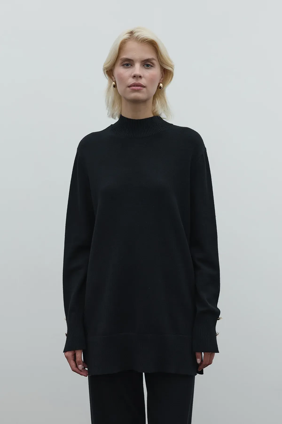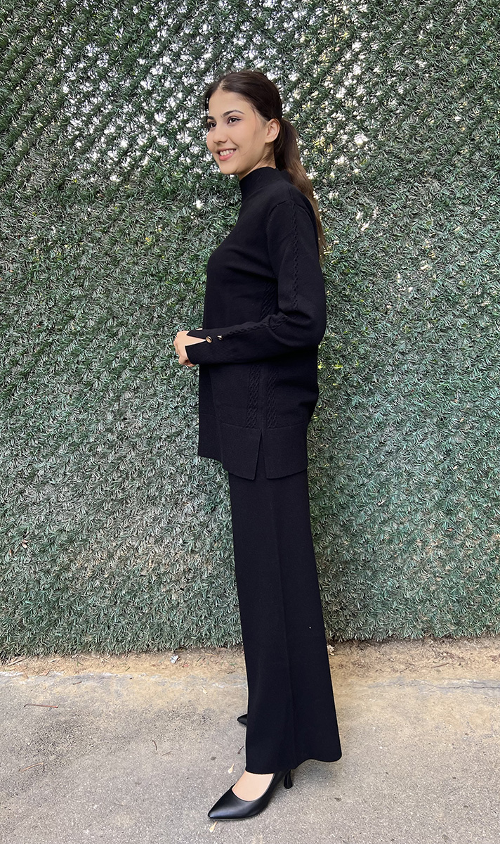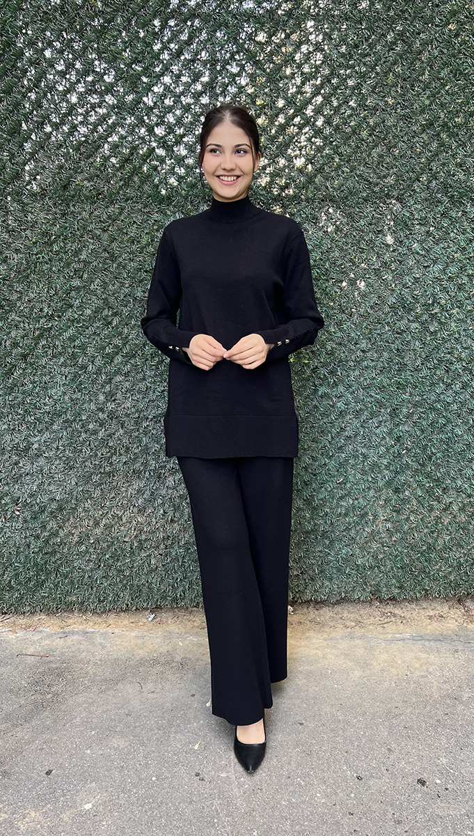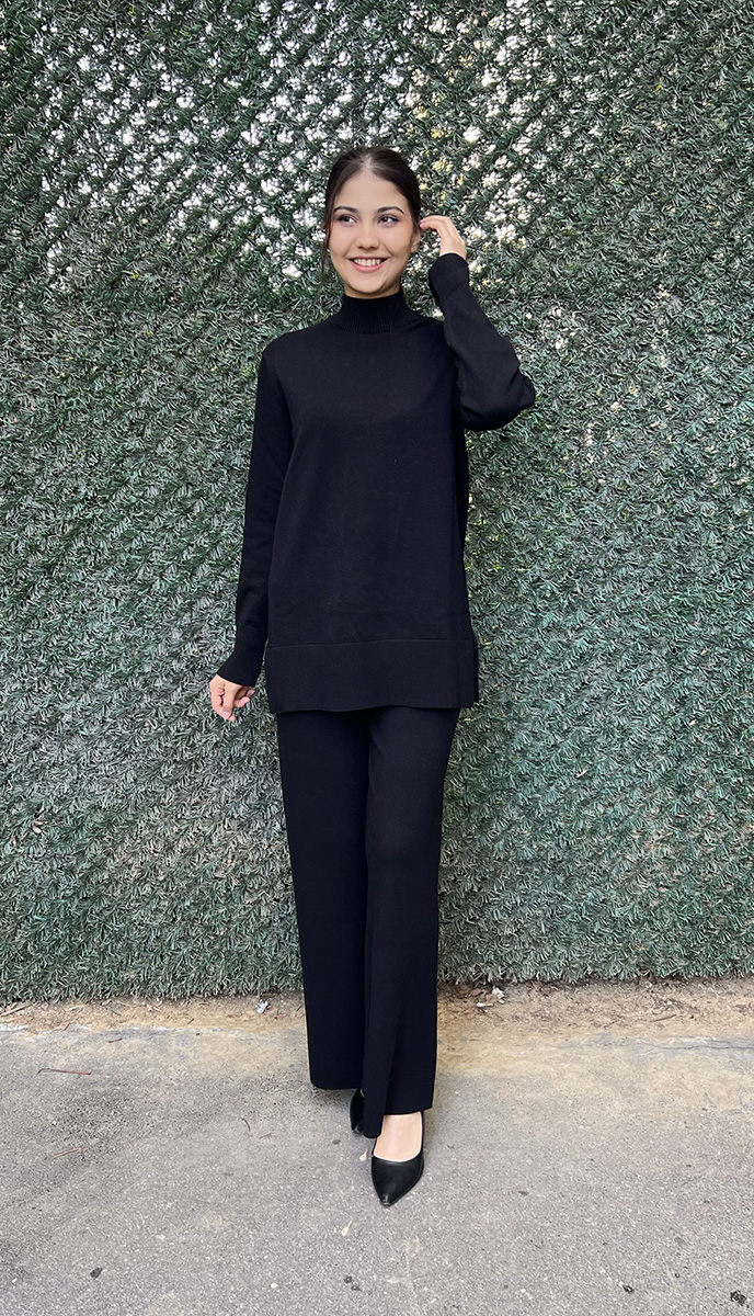 Clande Balıkçıl Yaka Triko Bluz SİYAH