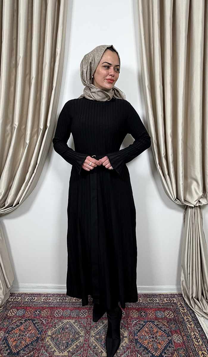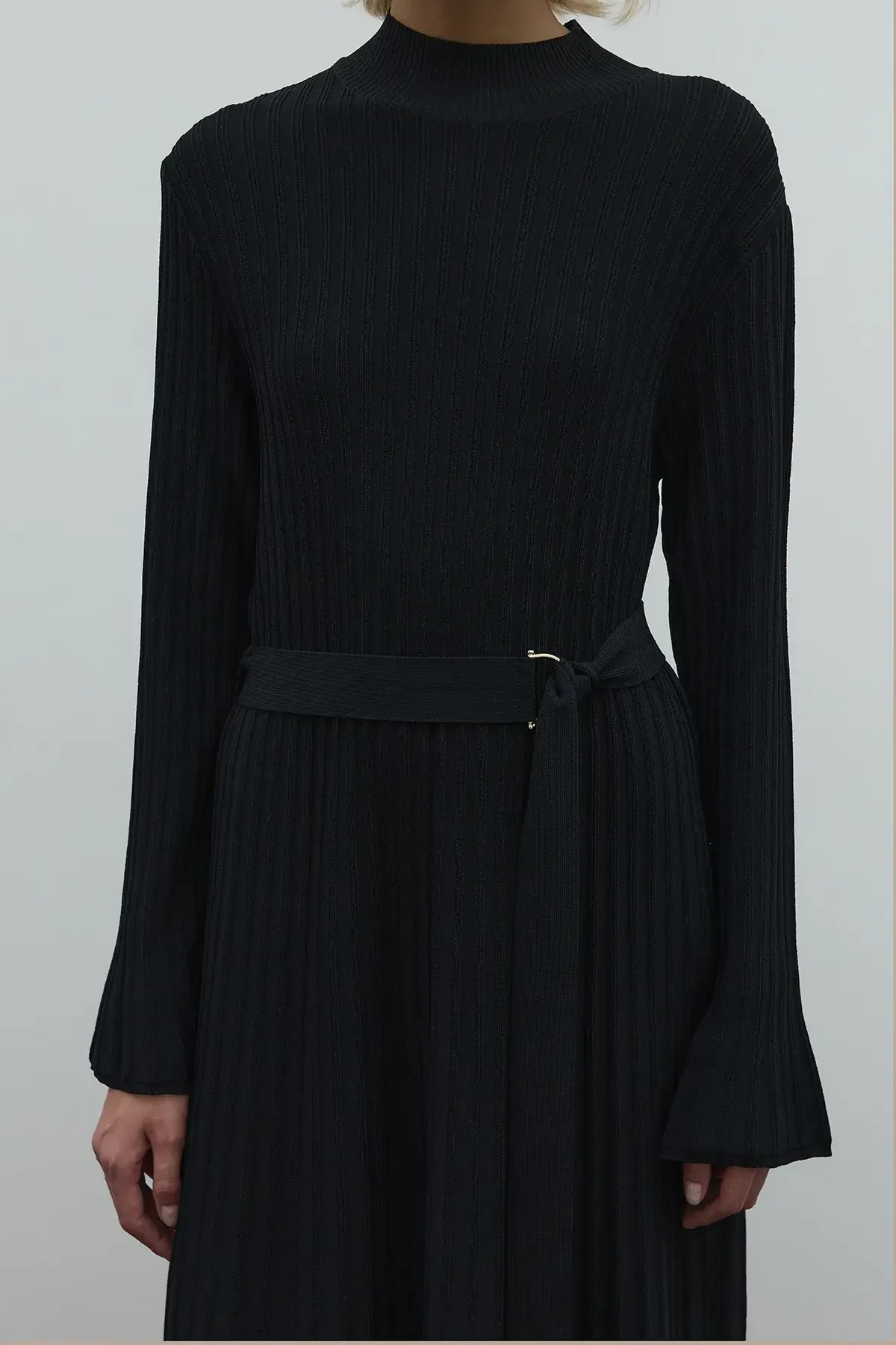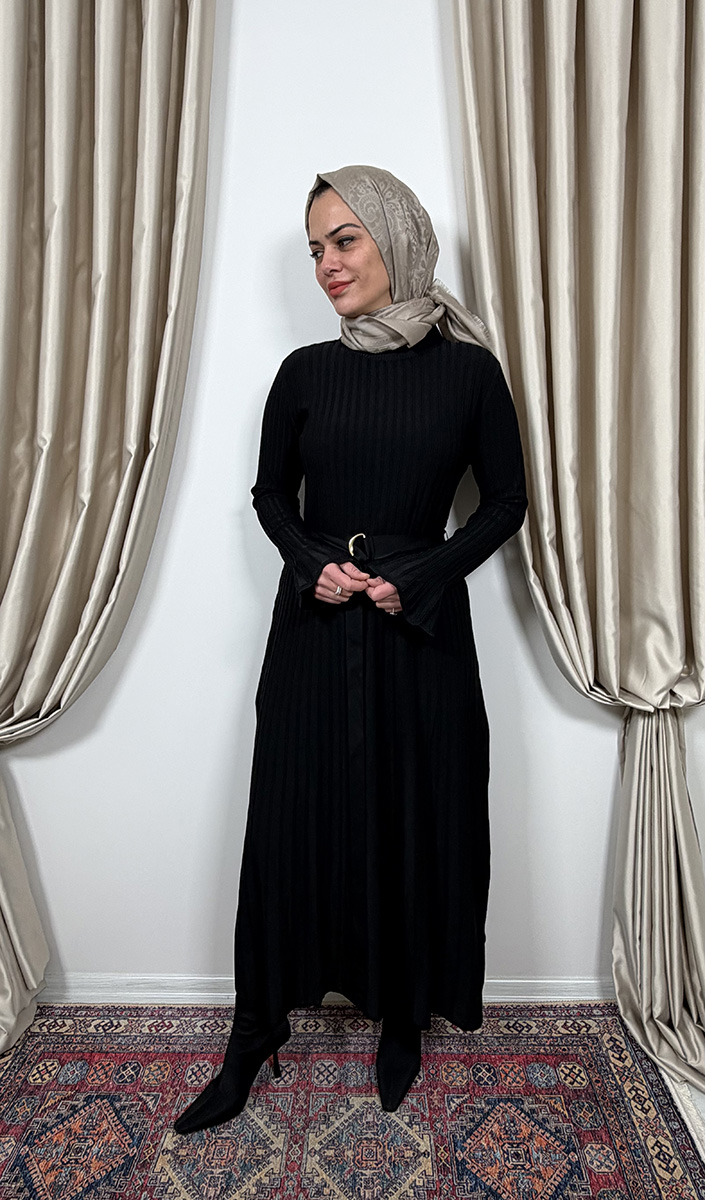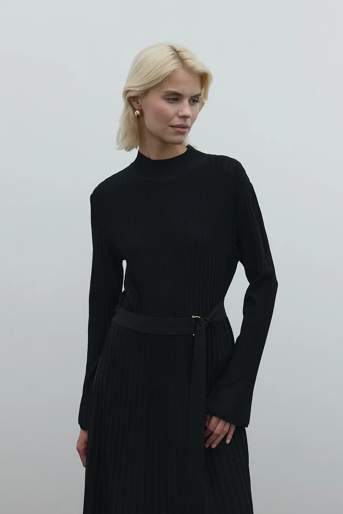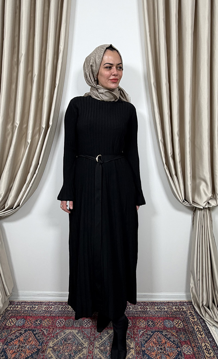 Clande Balıkçıl Yaka Triko Elbise SİYAH