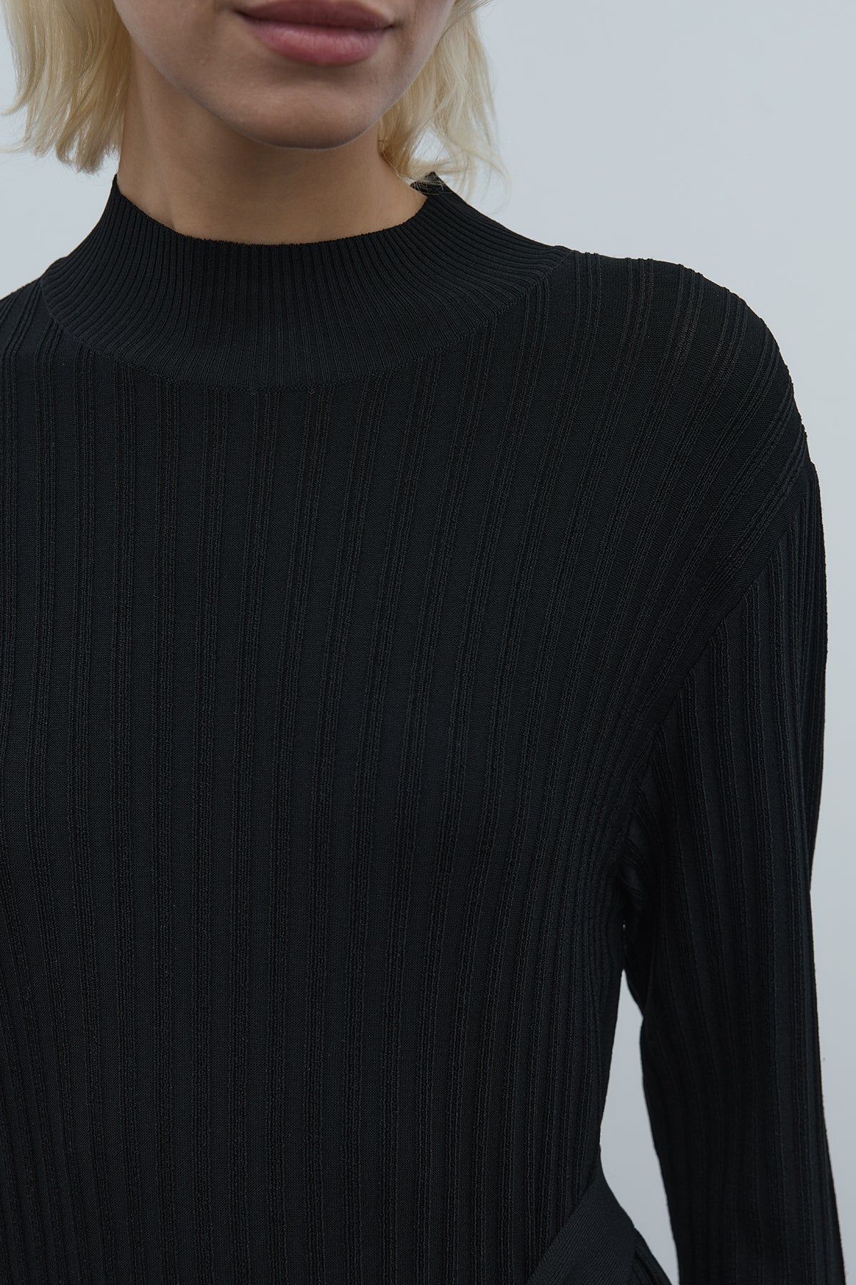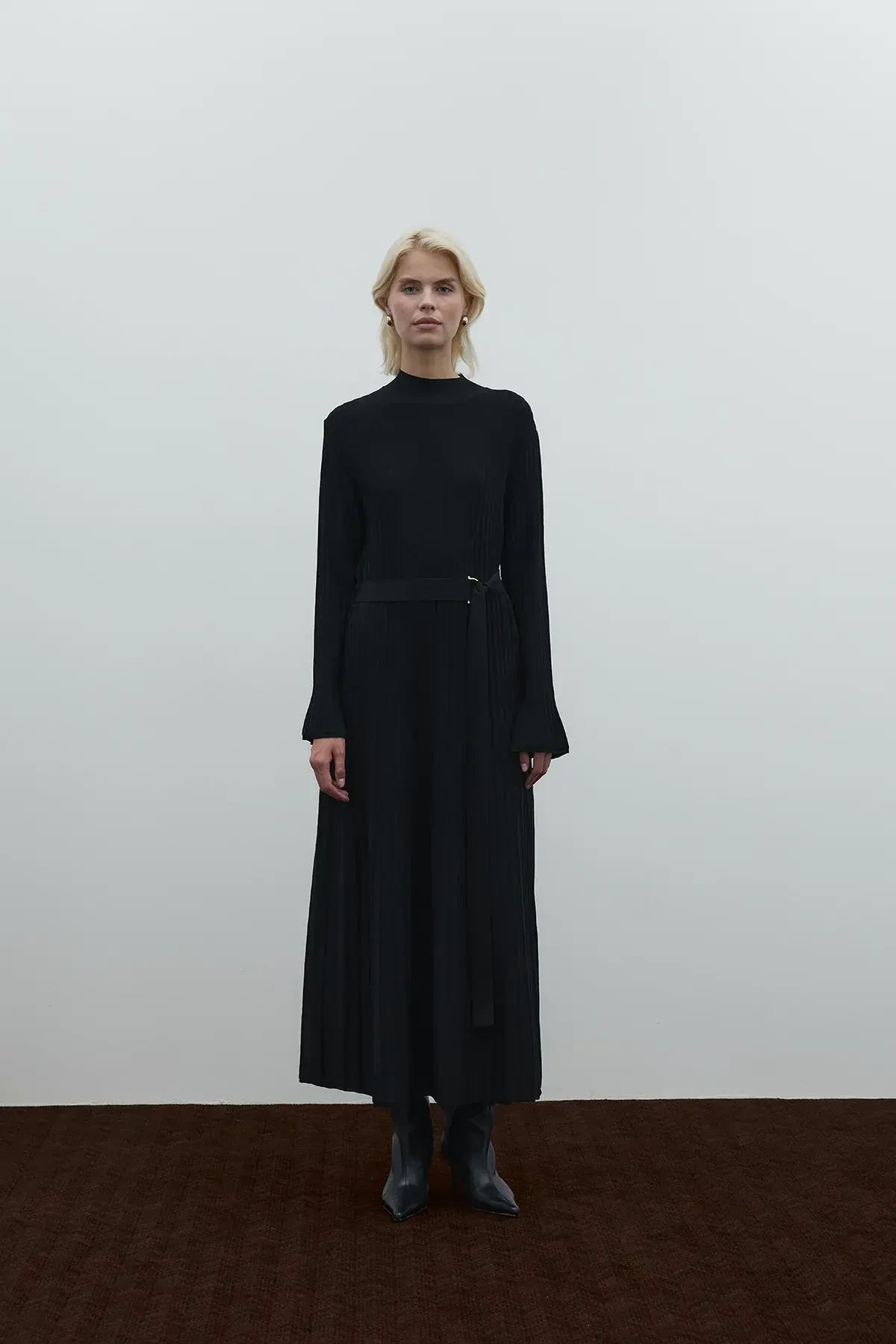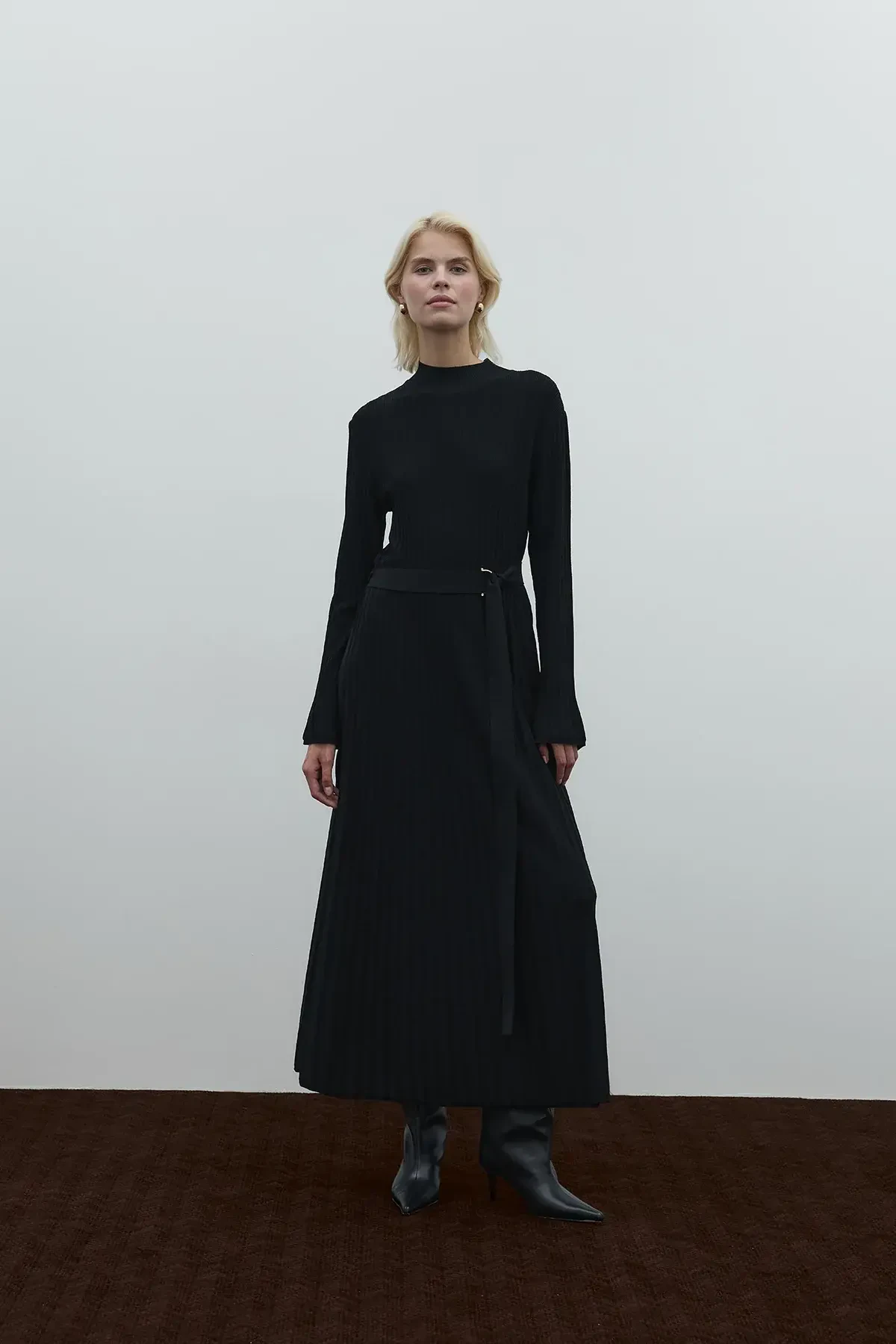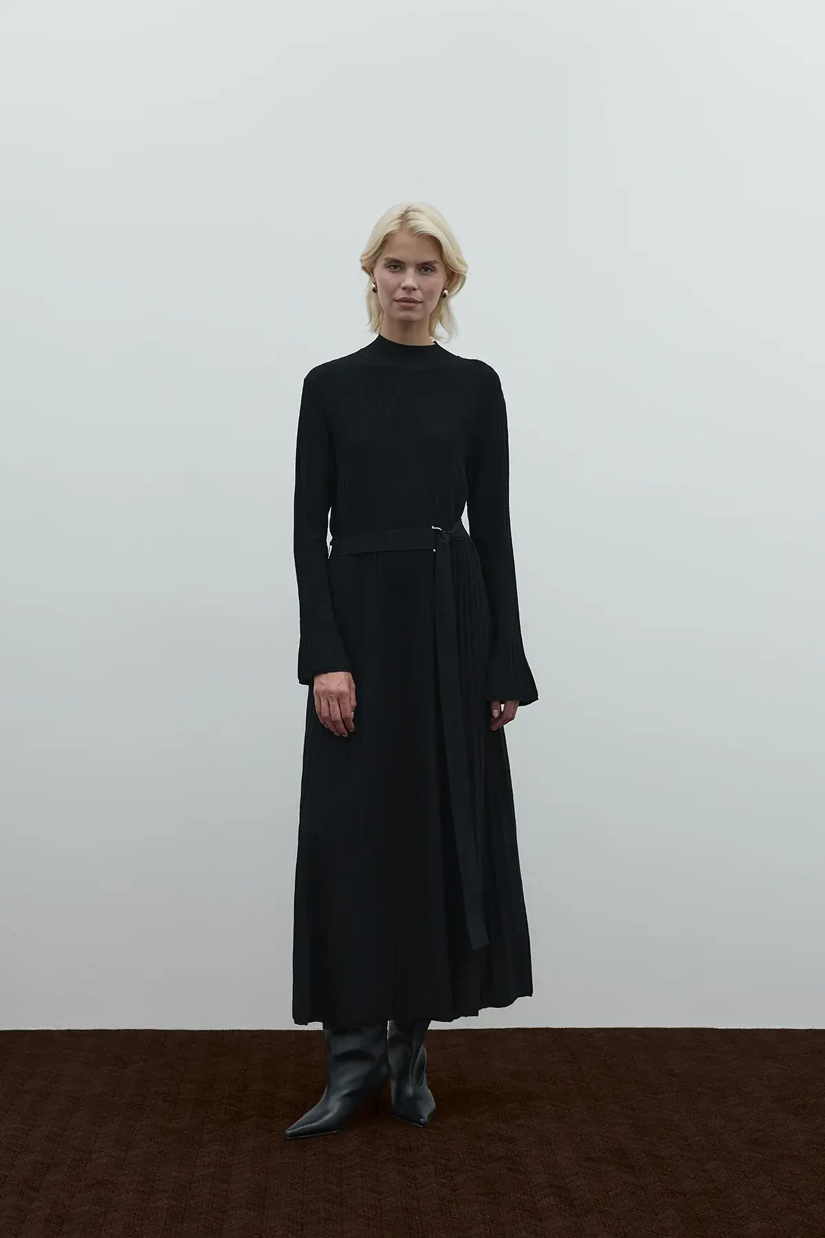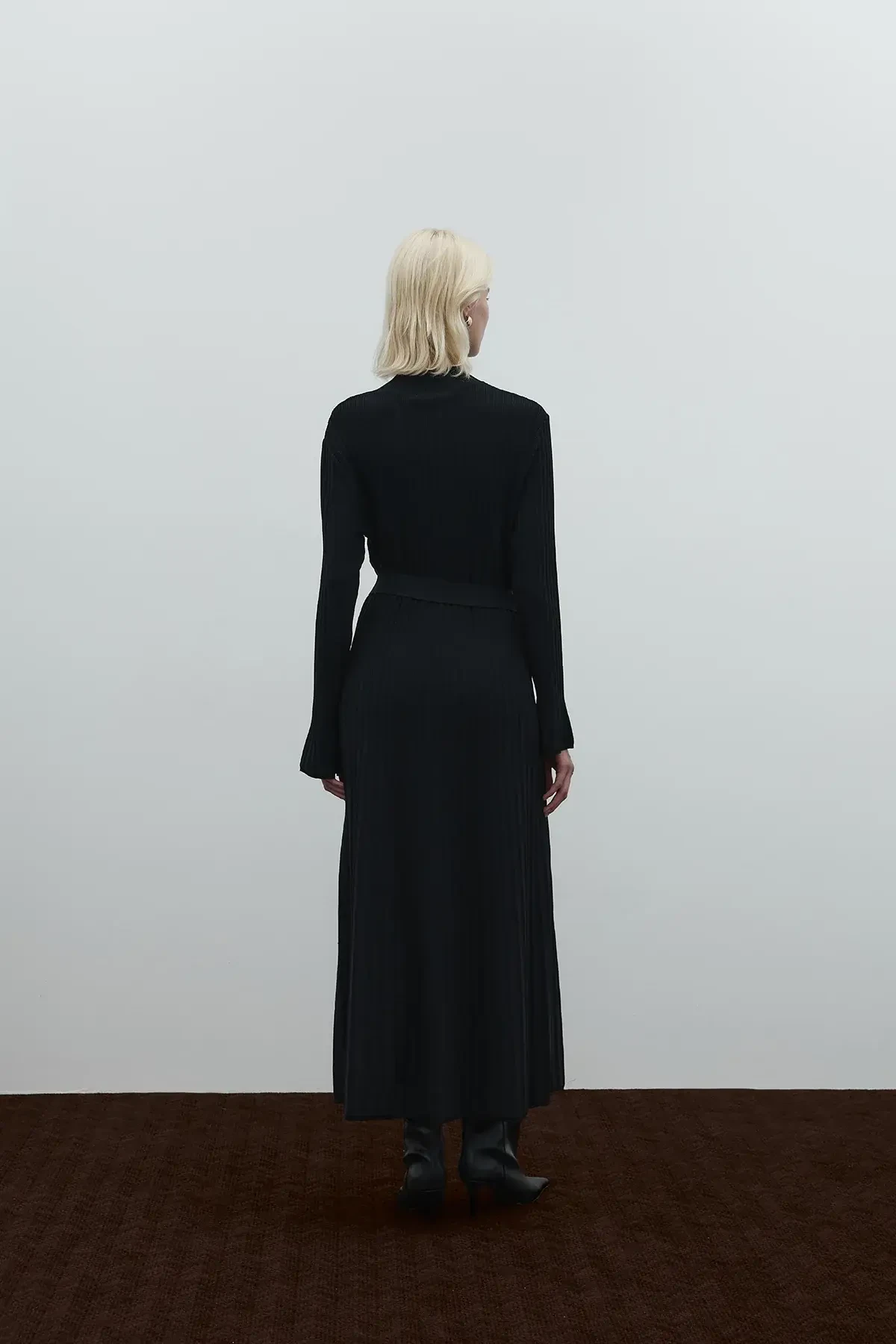 Clande Balıkçıl Yaka Triko Elbise SİYAH