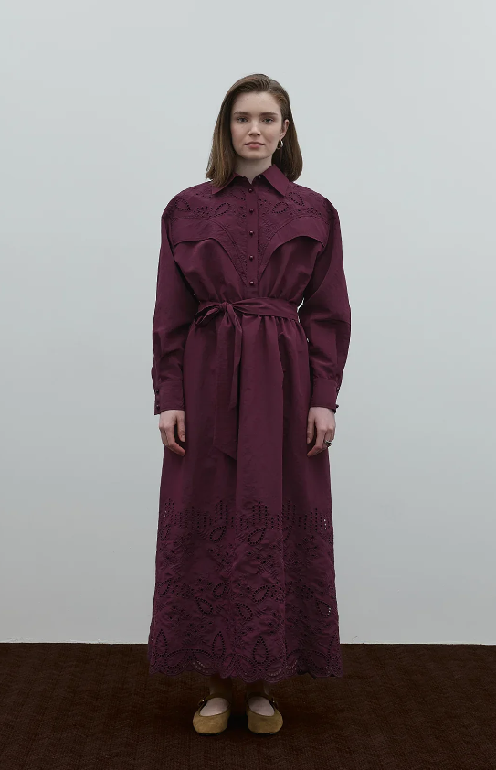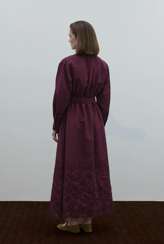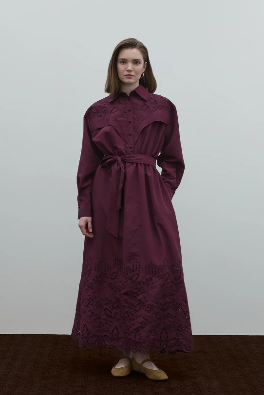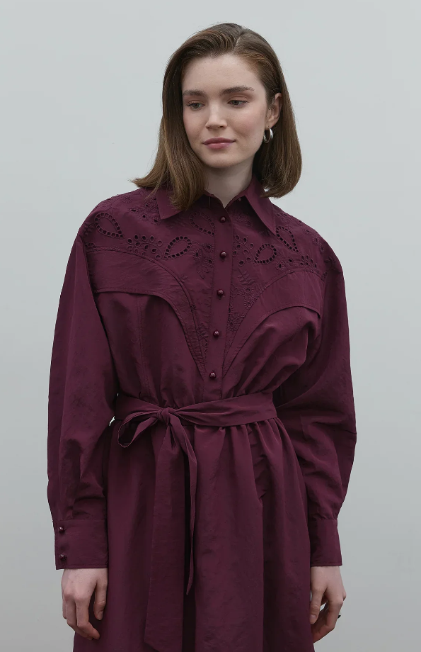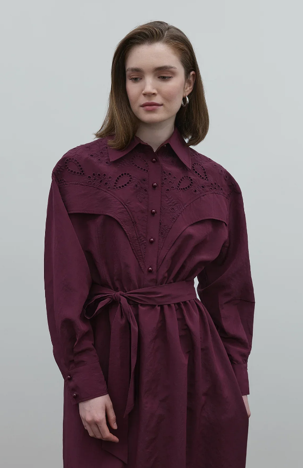 Clande Belden Büzgülü Dantel Detaylı Elbise BORDO