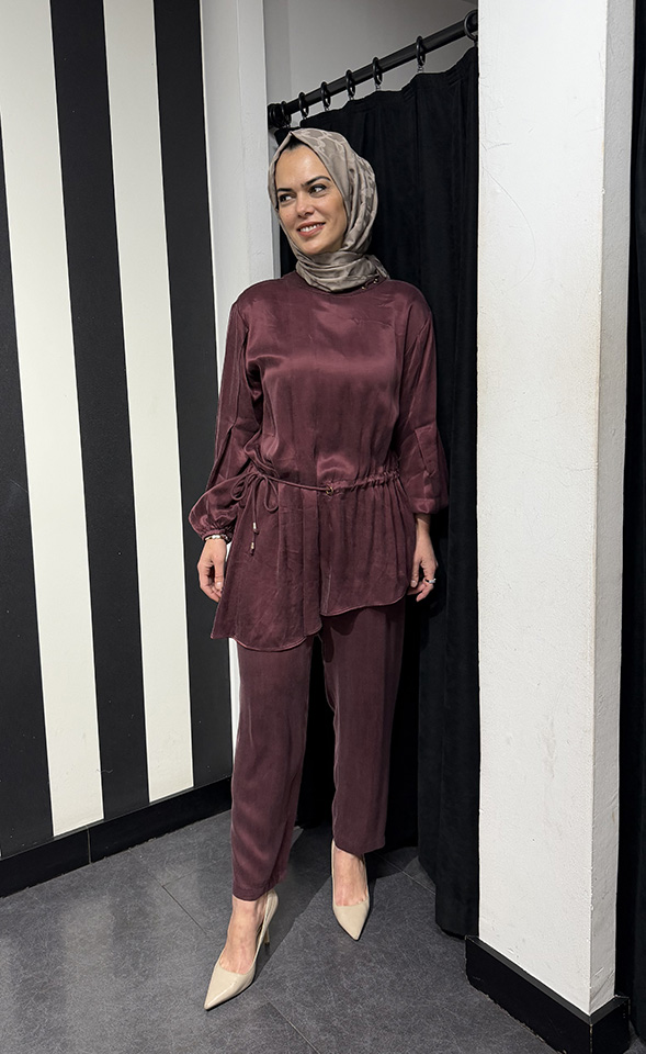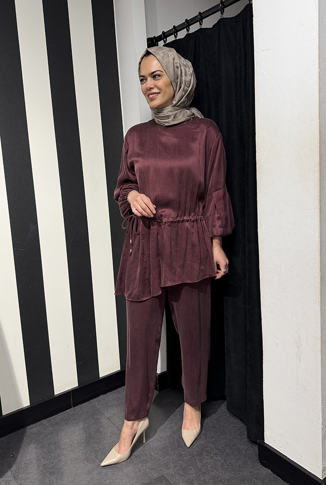 Clande Beli Büzgülü Cupra Tunik BORDO