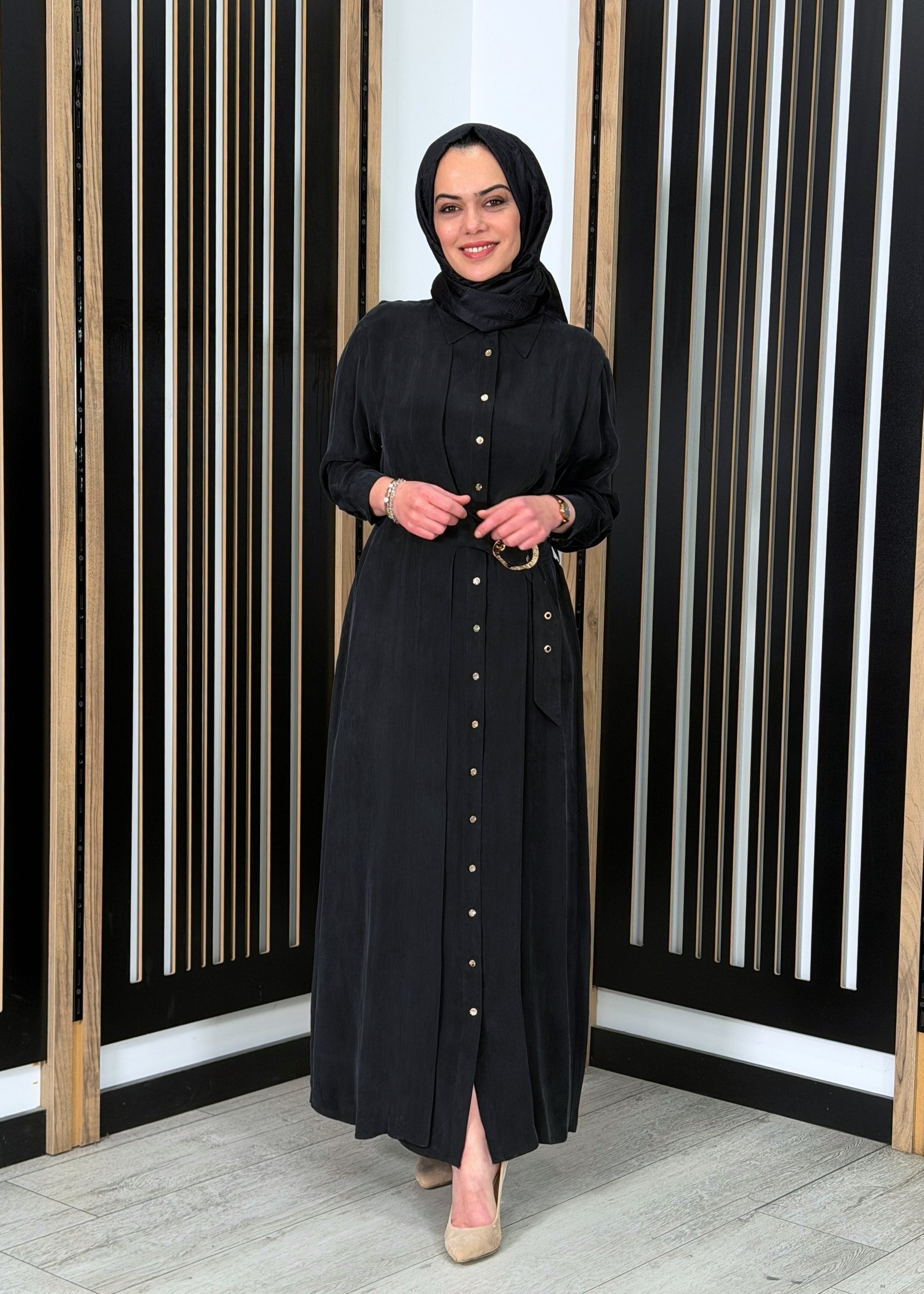 Clande Beli Kemerli Cupro Elbise SİYAH - 1Clande Beli Kemerli Cupro Elbise SİYAH - 2Clande Beli Kemerli Cupro Elbise SİYAH - 3