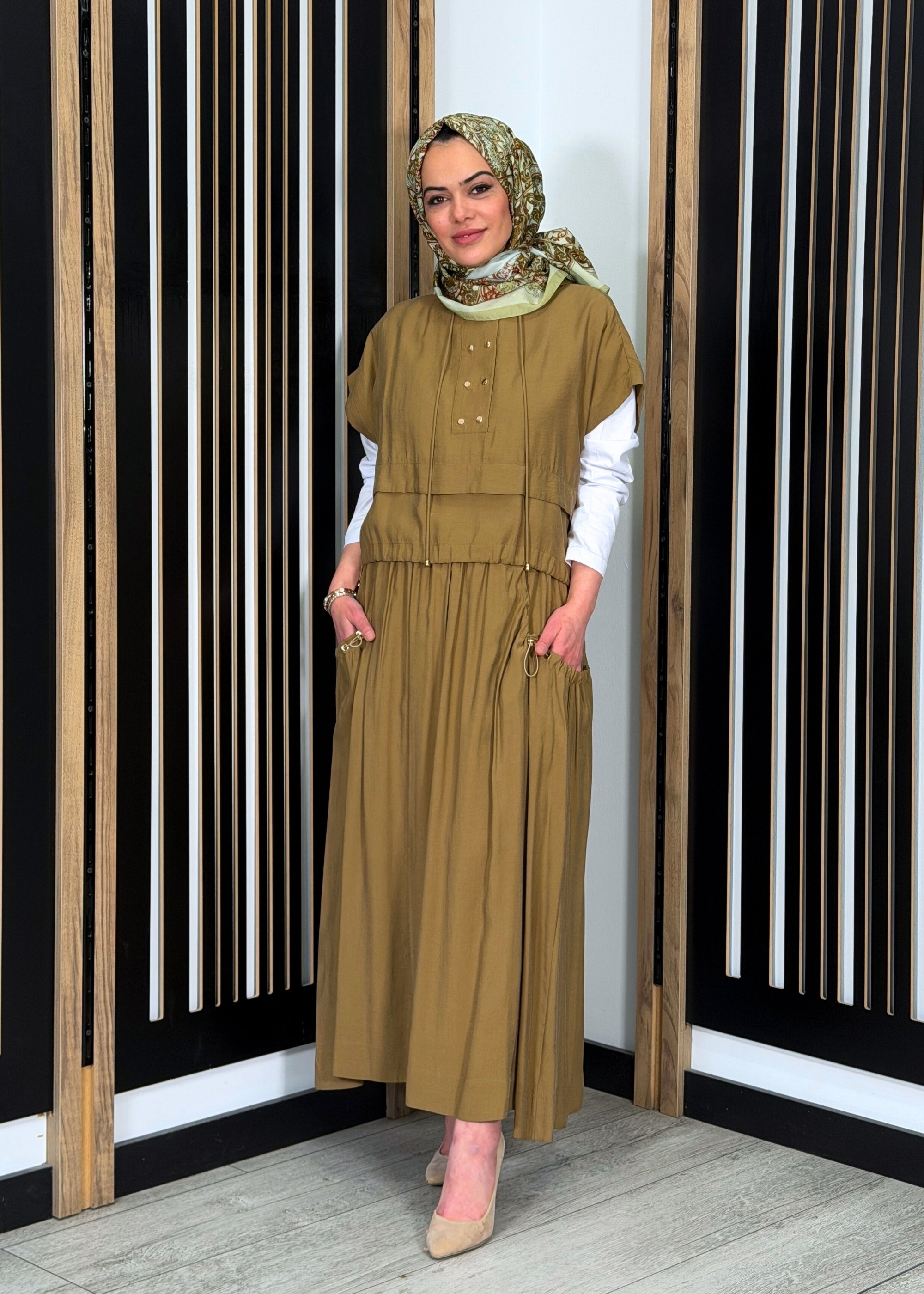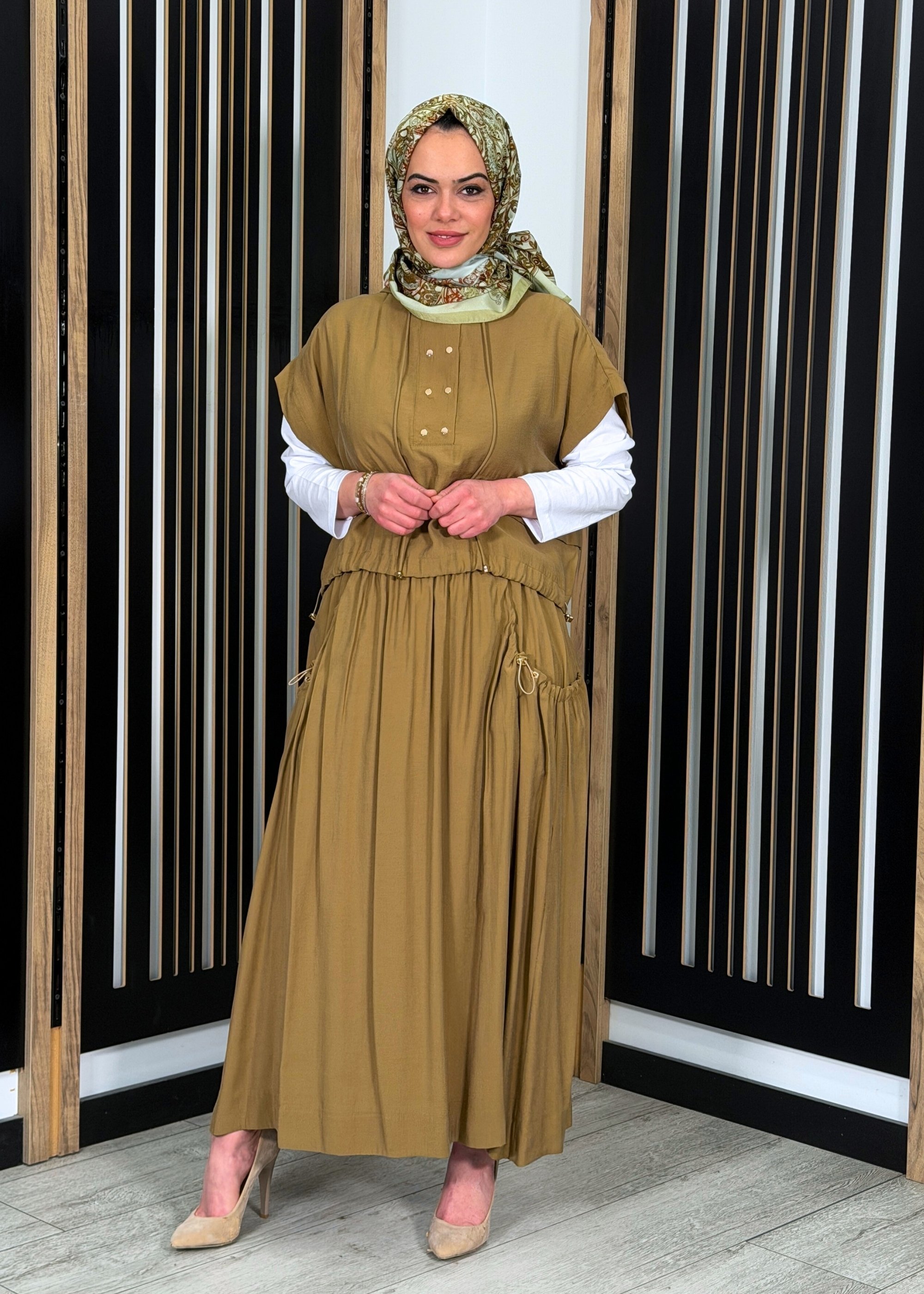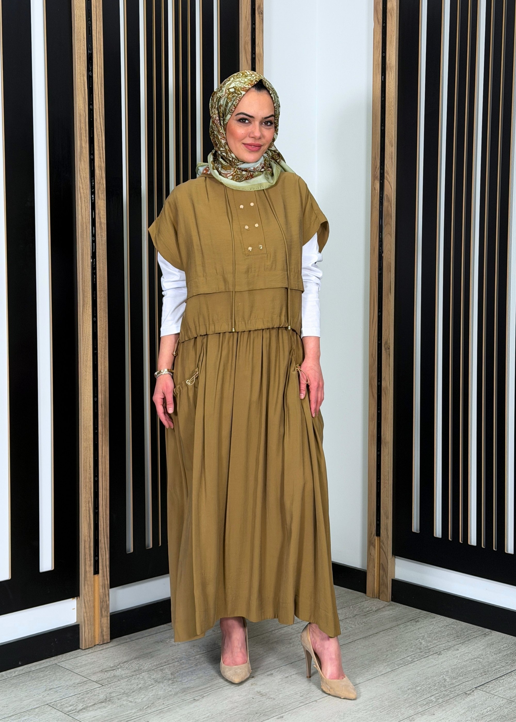 Clande Kolsuz Kapüşonlu Tunik TABA