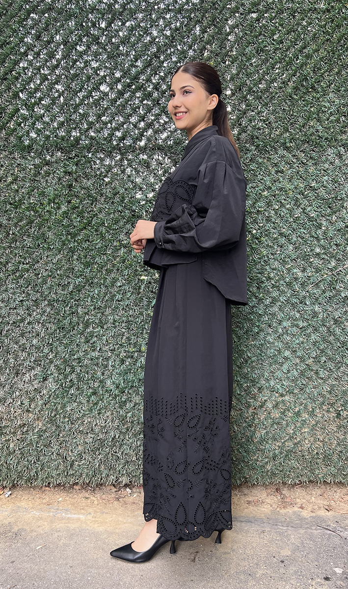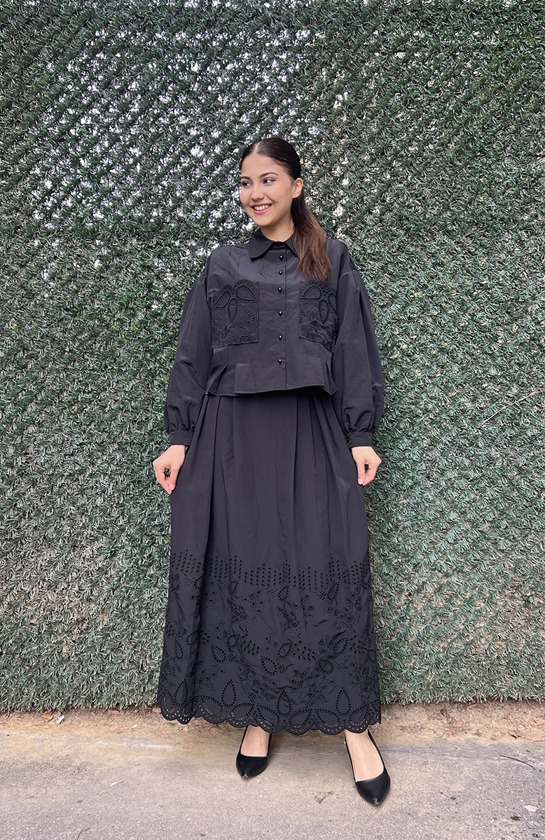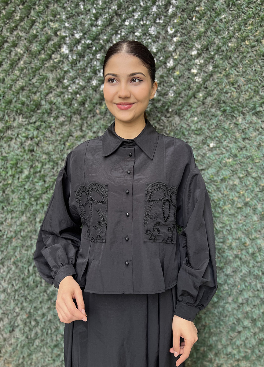 Clande Cepleri Dantel Detaylı Düğmeli Gömlek SİYAH