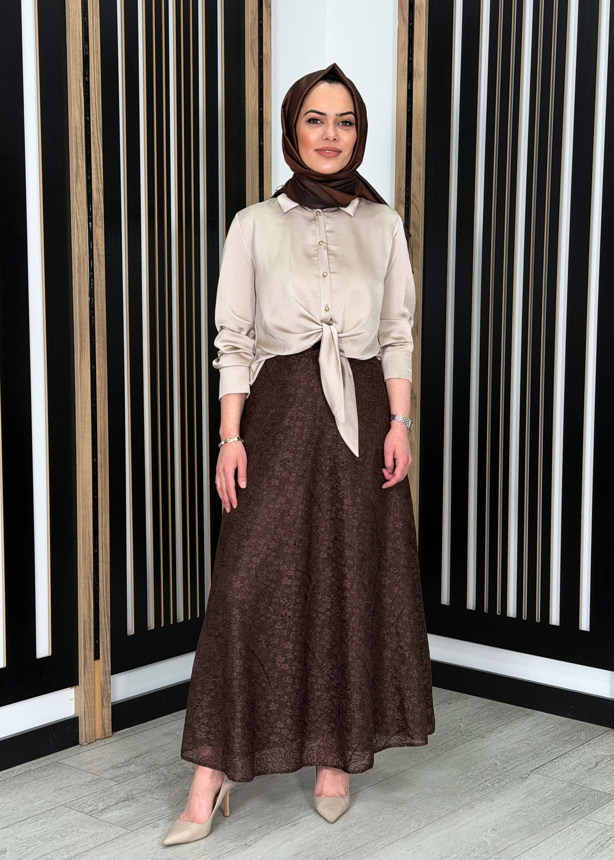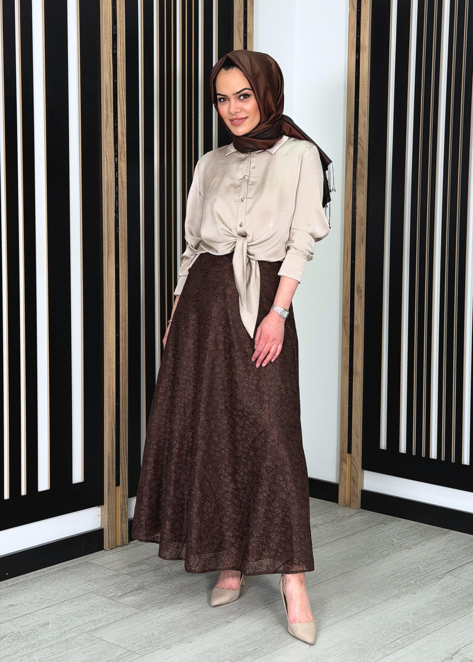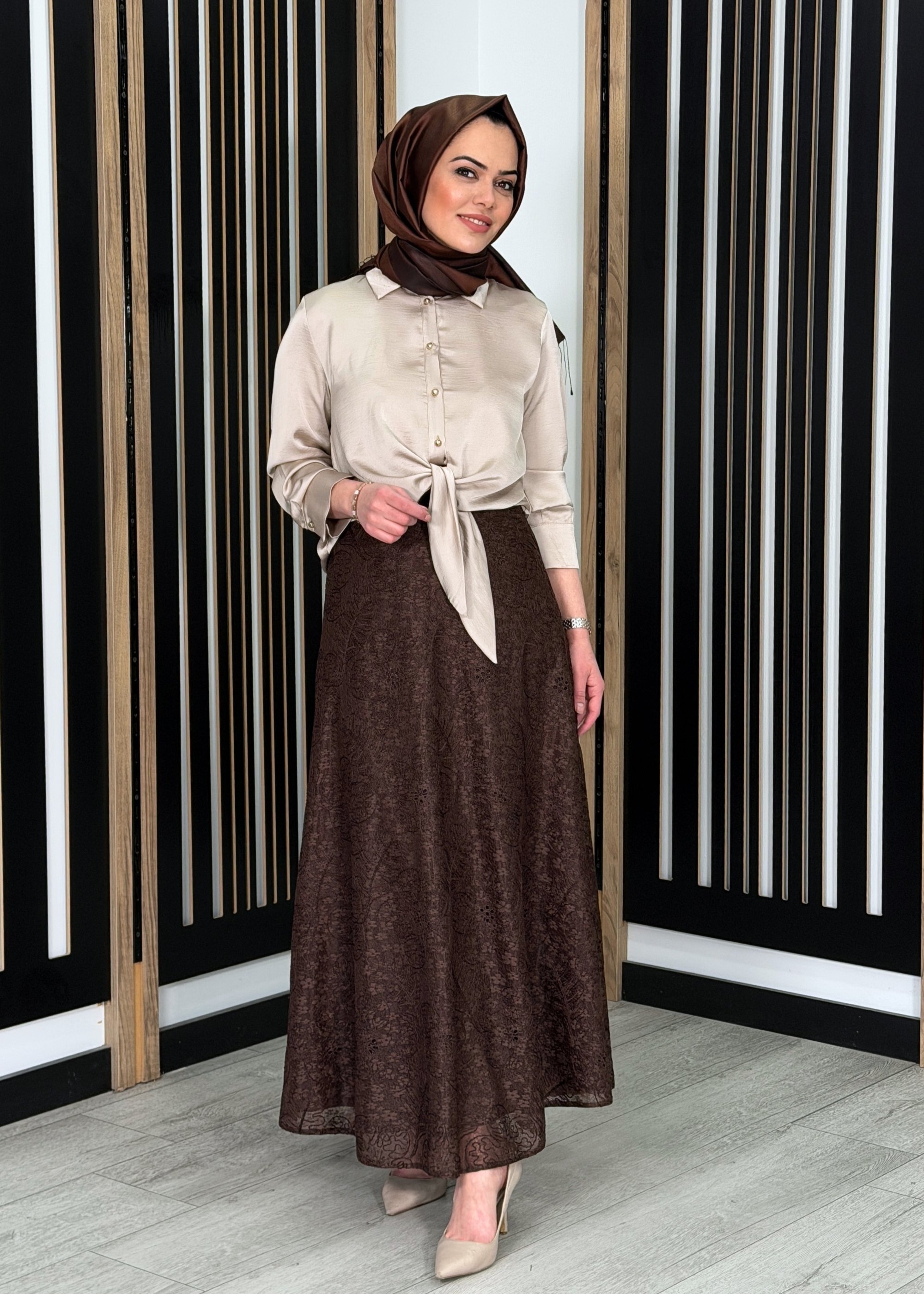 Miss Dalida A Kesim Cupro Etek Cacao