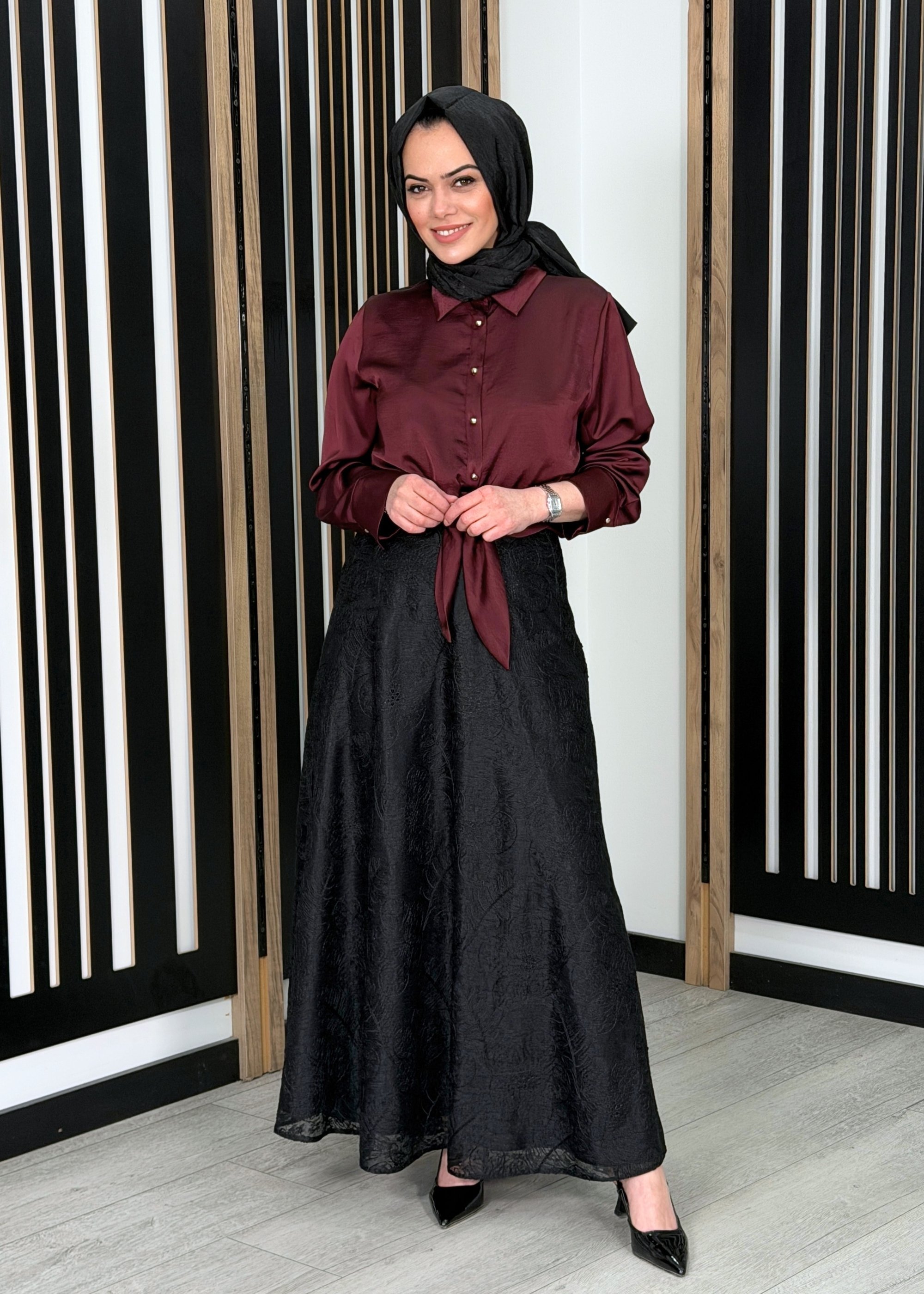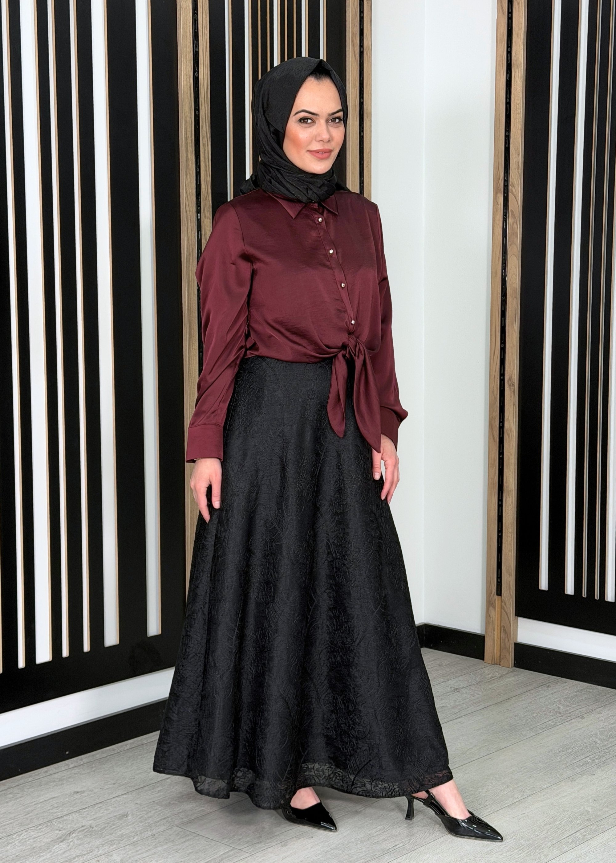 Miss Dalida A Kesim Cupro Etek Cherry