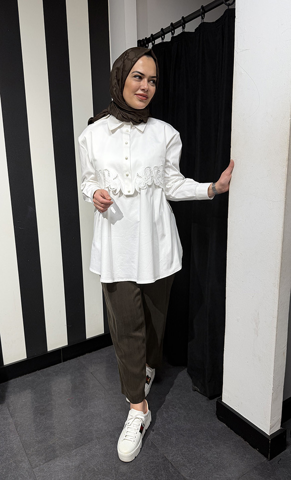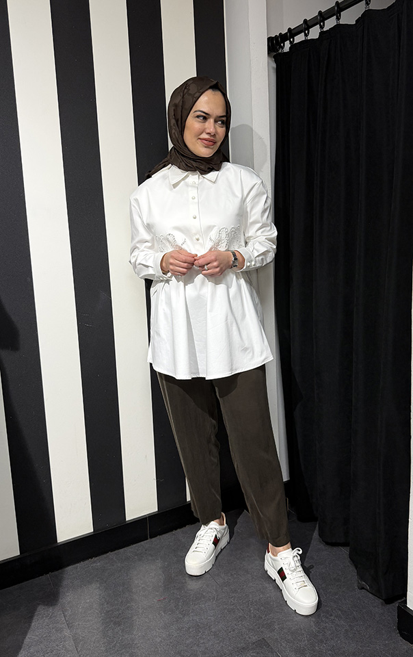 Miss Dalida Çıtçıtlı ve Önden Cepli Gömlek EKRU