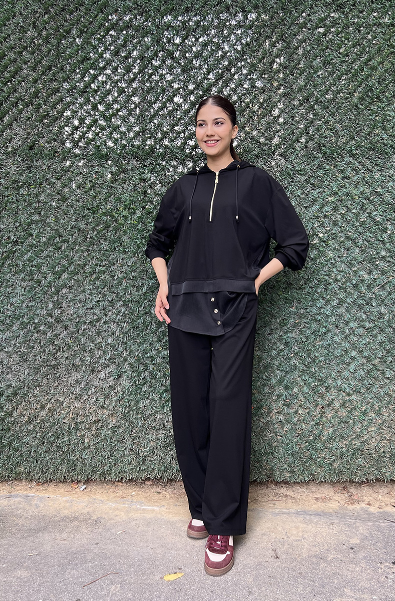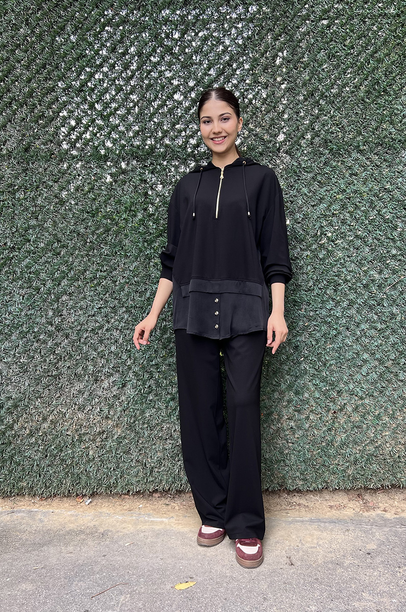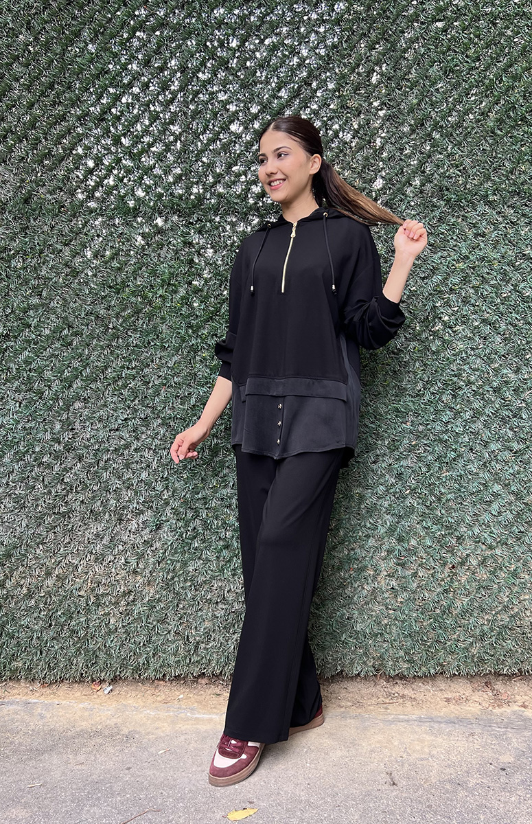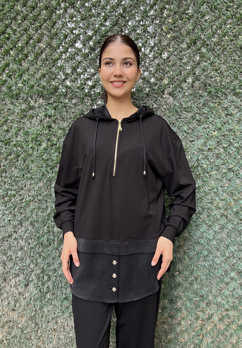 Clande Etek Ucu Cupra Penye Tunik SİYAH