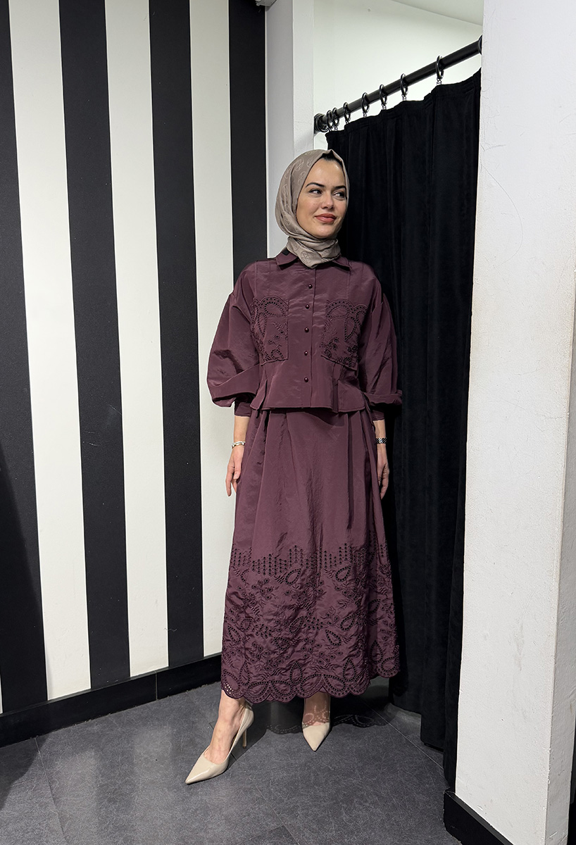 Zeynep Zümra Büzgü Detatlı Pliseli Etek MÜRDÜM
